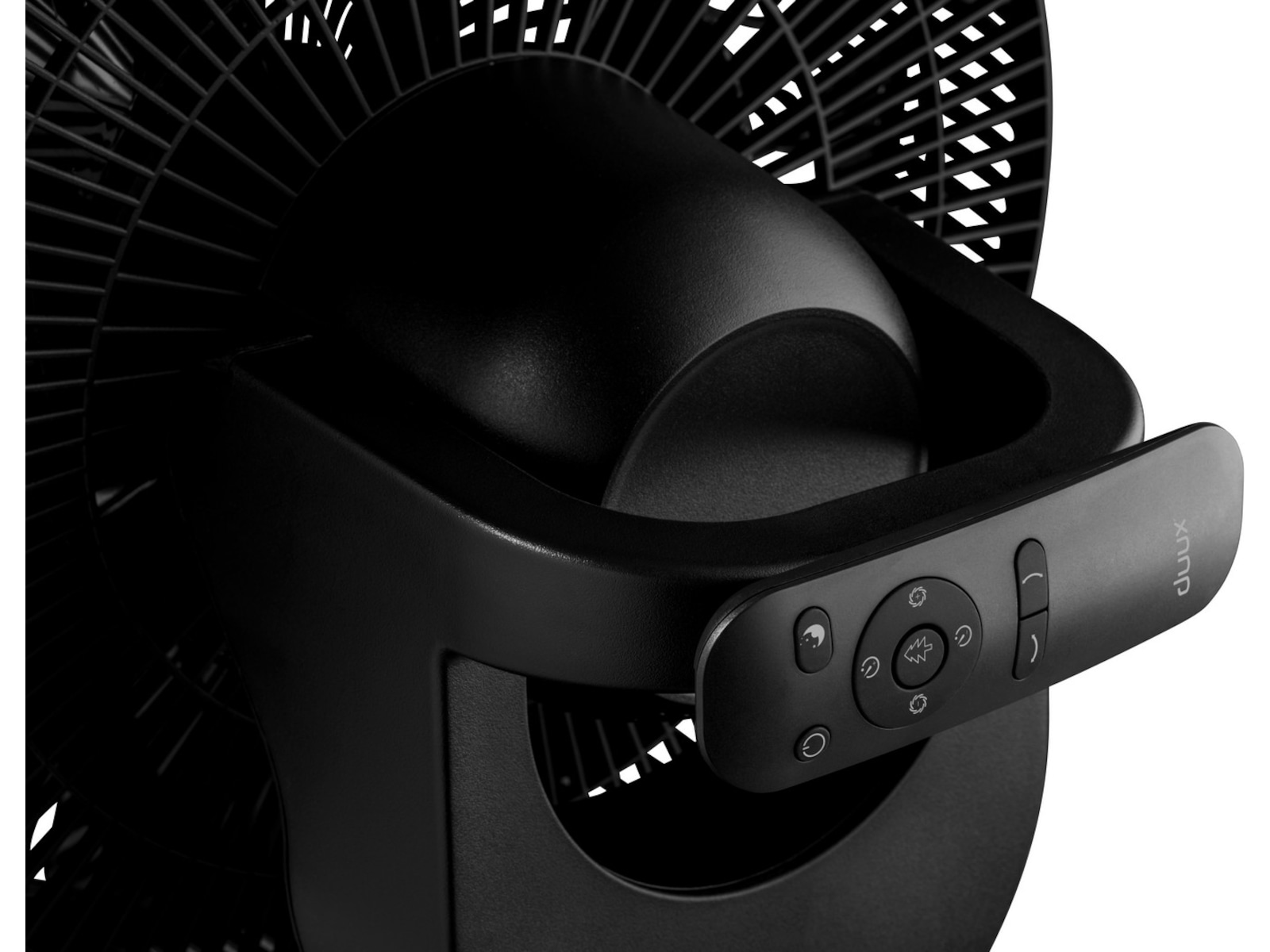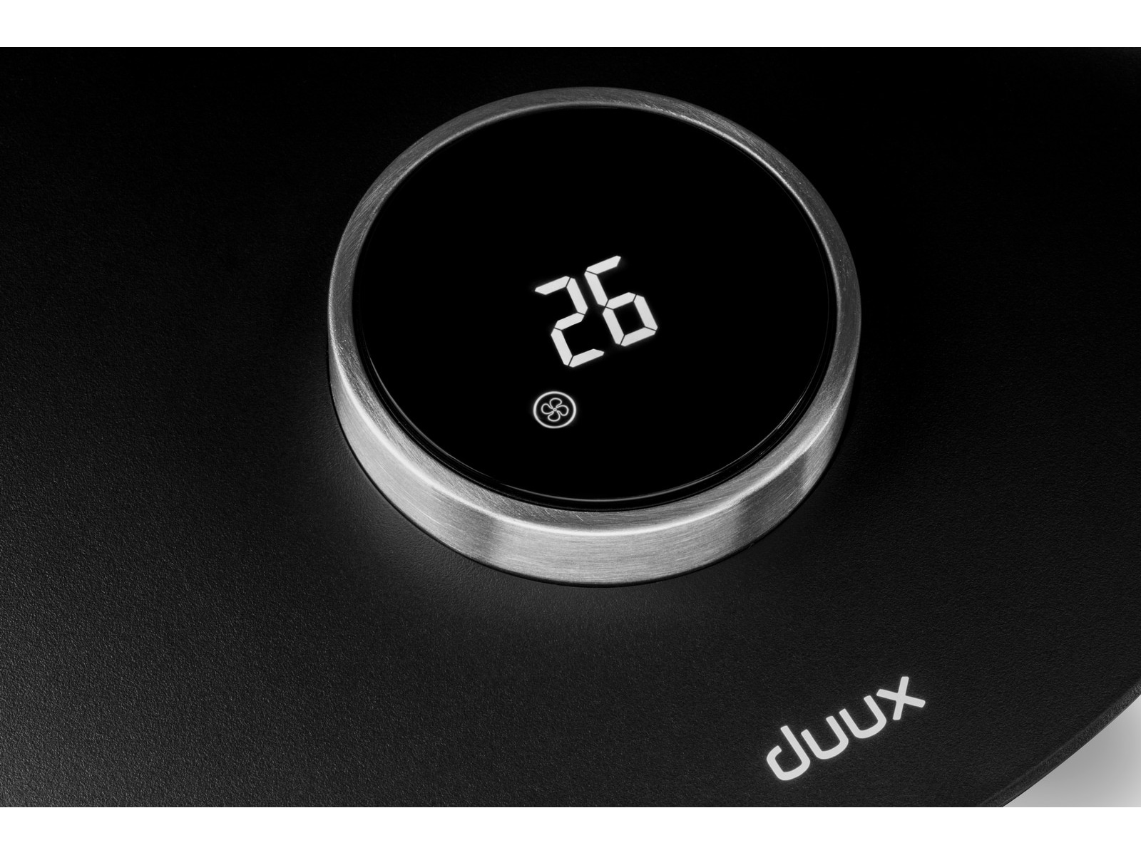 Whisper Flex tilbyr mange intuitive kontrollalternativer, inkludert vriknappen i aluminium med høyoppløst LCD-skjerm i midten av grensesnittet. Å, og ikke gidd å stå opp. Bare bruk Whisper Flex med Duux smarttelefon-appen eller fjernkontrollen som festes magnetisk på baksiden av enheten.