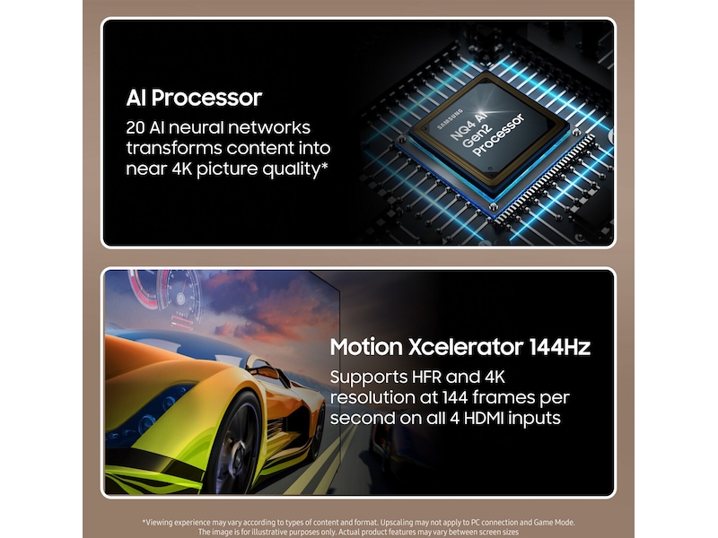 Kraftfull NQ4 AI Gen2-prosessor benytter AI-teknologi som tilpasser innholdet til 4K og justerer bilde og lyd etter rommet.