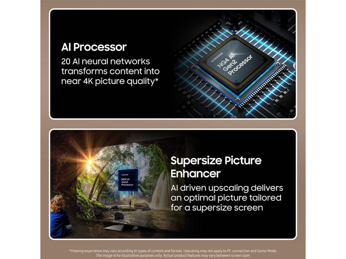 Kraftfull NQ4 AI Gen2-prosessor benytter AI-teknologi som tilpasser innholdet til 4K og justerer bilde og lyd etter rommet.