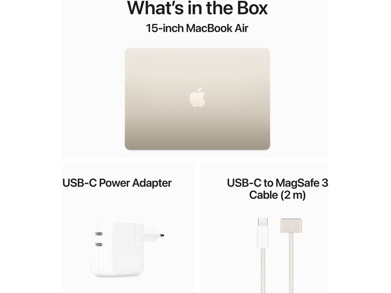 Inkludert tilbehør USB-C kompakt strømadapter med to porter, USB-C til MagSafe 3-ladekabel (2 m)