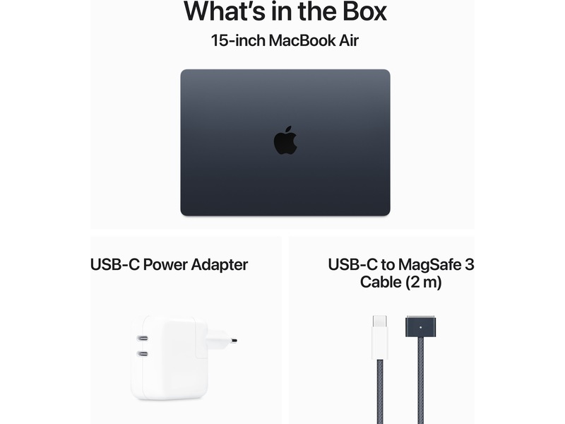 Inkludert tilbehør USB-C kompakt strømadapter med to porter, USB-C til MagSafe 3-ladekabel (2 m)