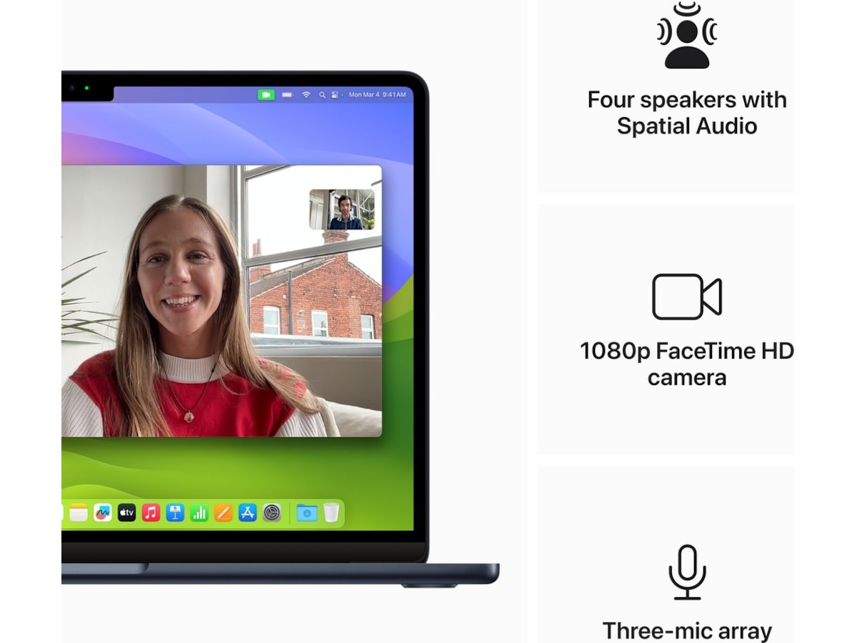 • FULLKONTAKT – MacBook Air har to Thunderbolt-porter, en hodetelefonutgang, wifi 6E,(4) Bluetooth 5.3 og en MagSafe-ladeport. Koble til opptil to eksterne skjermer med maskinen lukket.