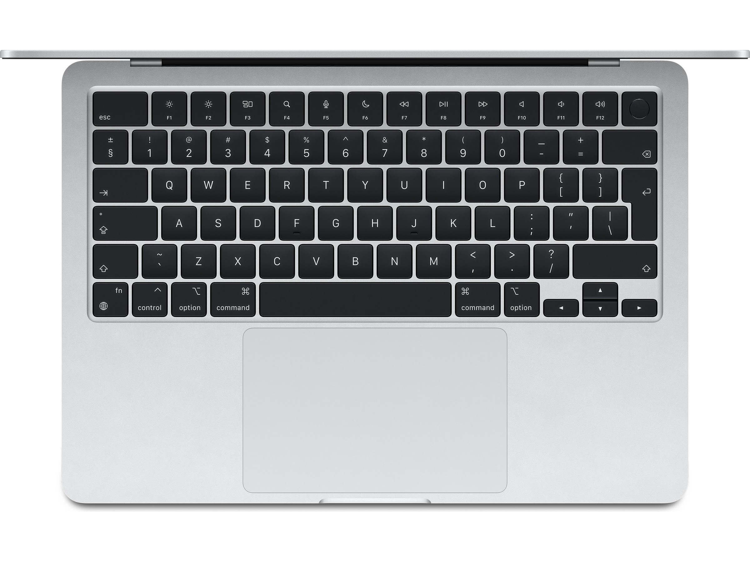 2) Skjermen på 13-tommers MacBook Air har avrundede hjørner på toppen. Målt som et rektangel er skjermen 13,6 tommer diagonalt (den faktiske synlige skjermflaten er mindre).