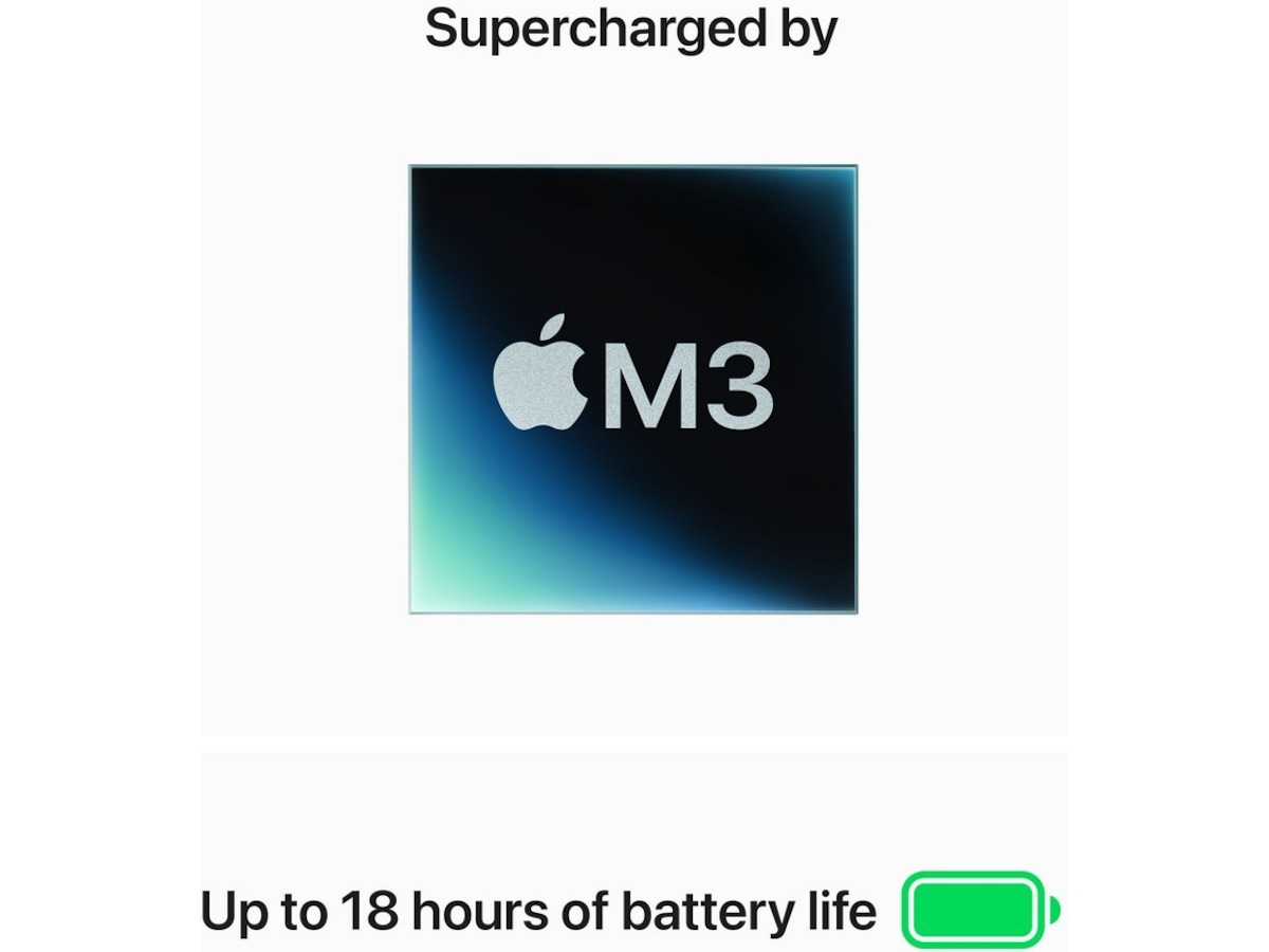 • GJØR MER PÅ MINDRE TID – Den kraftige Apple M3-chipen med 8-kjerners prosessor og 10-kjerners grafikkprosessor sørger for jevnt høy ytelse.