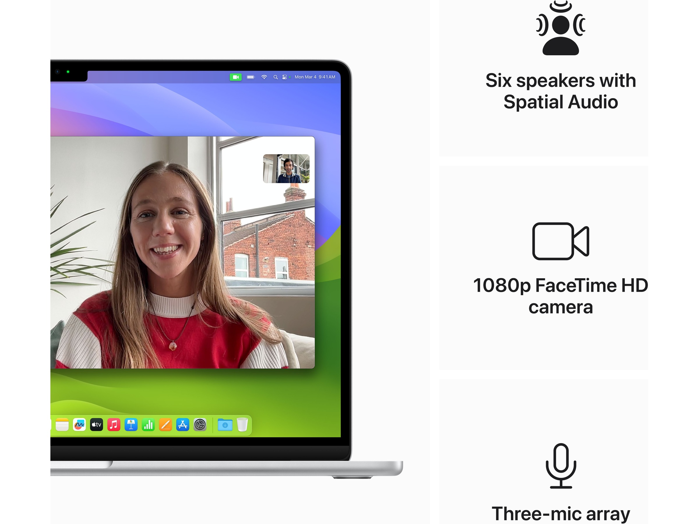 • BLI SETT OG HØRT, SYLSKARPT – 1080p HD-kameraet, de tre mikrofonene og de seks høyttalerne med romtilpasset lyd får alt til å se og høres fantastisk ut.