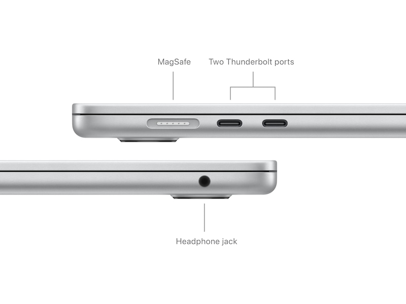 - FULLKONTAKT – MacBook Air har to Thunderbolt-porter, en hodetelefonutgang, wifi 6E,(4) Bluetooth 5.3 og en MagSafe-ladeport. Koble til opptil to eksterne skjermer med maskinen lukket.