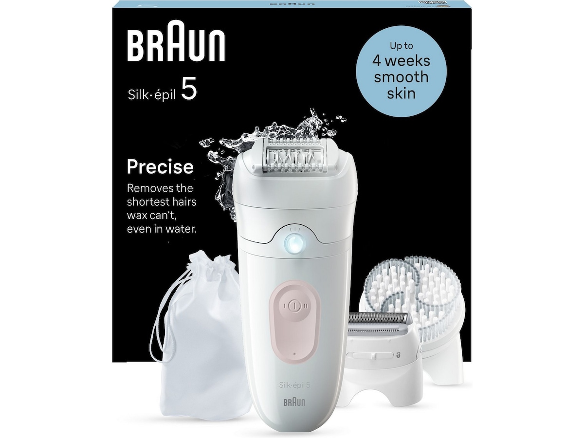 Braun Silk-épil 5 Epilator SE5-060 Opptil 1 måned med glatt hud – når som helst, hjemme hos deg selv Presis: Fjerner hår som voks ikke klarer. MicroGrip-pinsettene kan fange opp hår så korte som 0,5 mm.