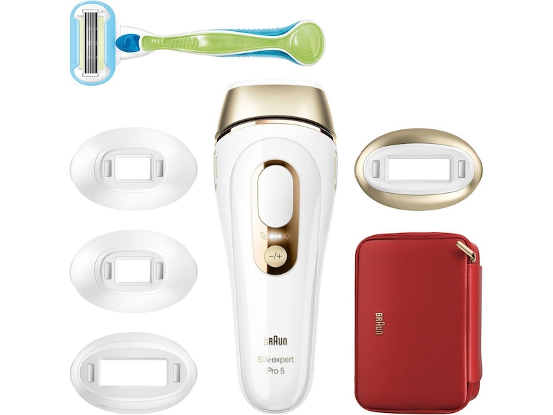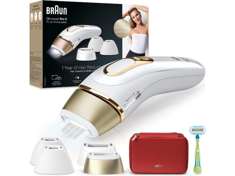 Braun IPL Silk·expert Pro 5 PL5382 (hvit/gull) 1 år med glatt hud, med synlige resultater på bare 3 uker * Optimal effekt på alle kroppsdeler med SkinPro (SensoAdapt™) – salonglignende teknologi som automatisk og kontinuerlig tilpasser seg hudtonen