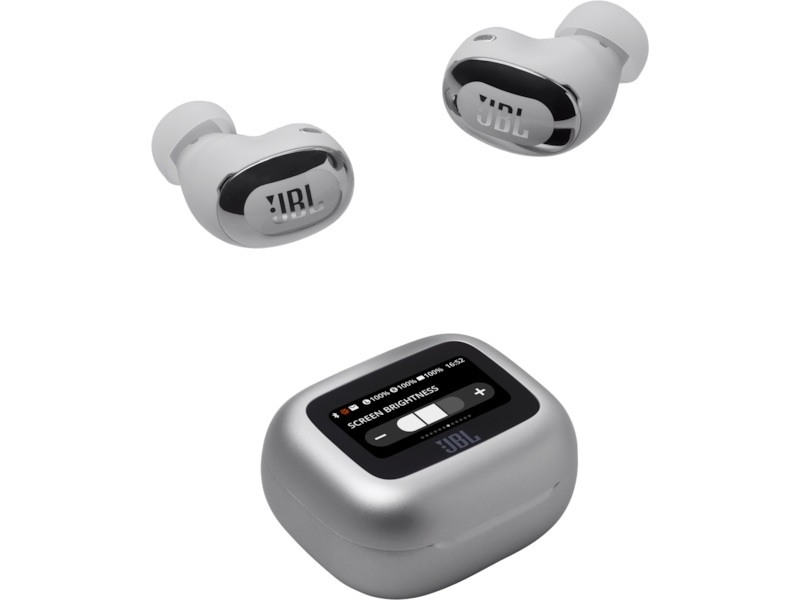 Du justerer selv på alle deler av JBL Live Beam 3-øreproppene via berøringsskjermen (1,45 tommer) på Smart Charging Case™. Skjermen gir deg stålkontroll over lyden på alle enheter, bærbare PC-er, TV-er, smarttelefoner eller nettbrett, uten at du trenger tilgang til JBL-appen på smarttelefonen.
