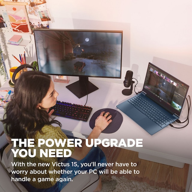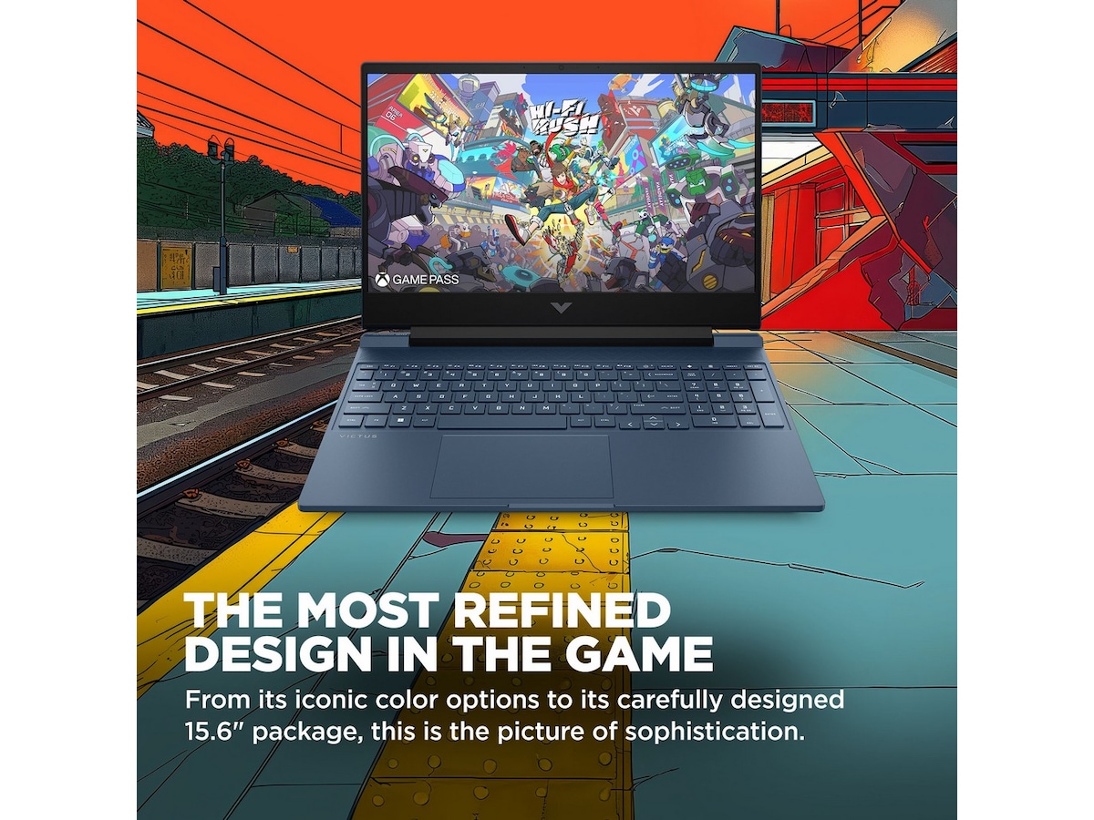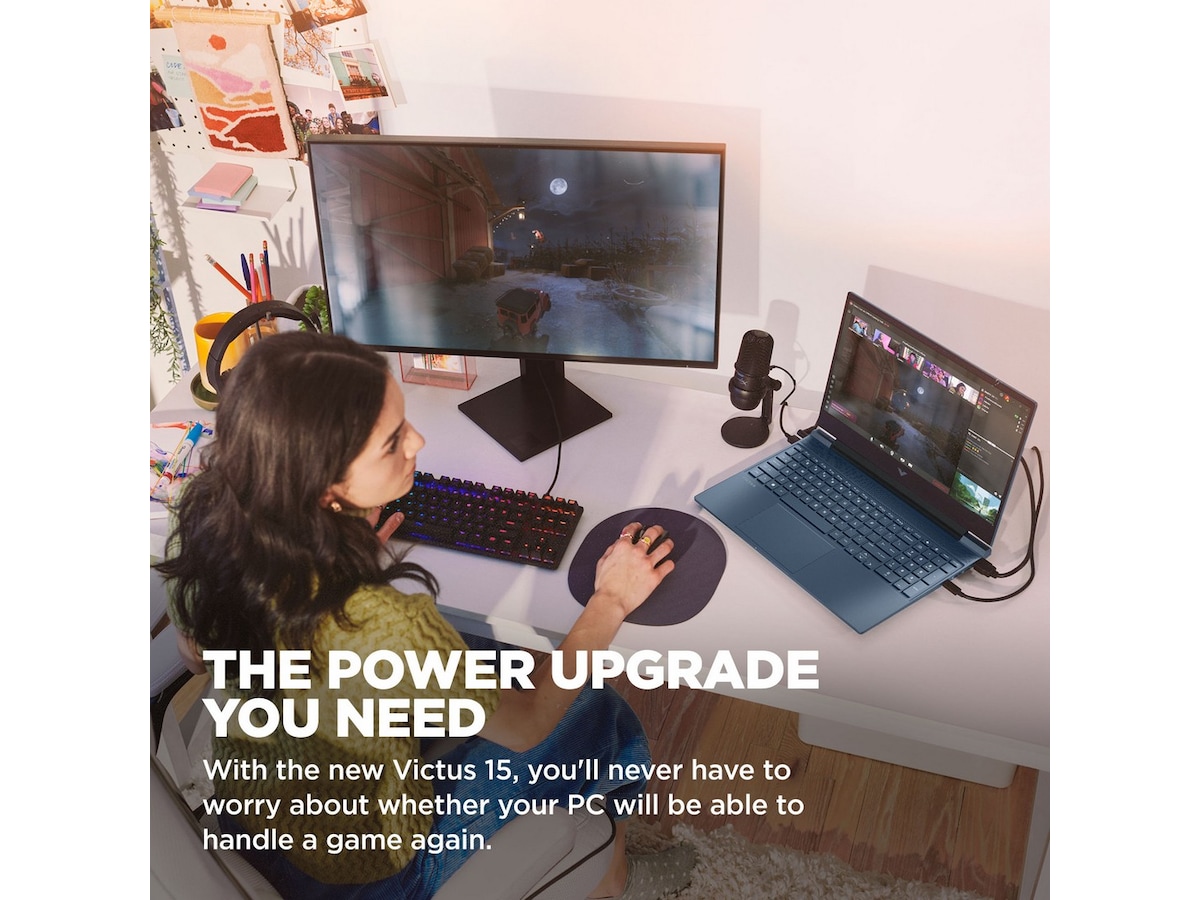 En bærbar HP Victus PC erlaget for PC-gaming på sitt beste. Denne slanke maskinen har en kraftig AMD-prosessor og NVIDIA-grafikk. Designet til den bærbare PC-en erlike imponerende som maskinvaren med nok av farger å velge mellom , oppdatert kjøling og et HD-kamera med temporal støyreduksjon.