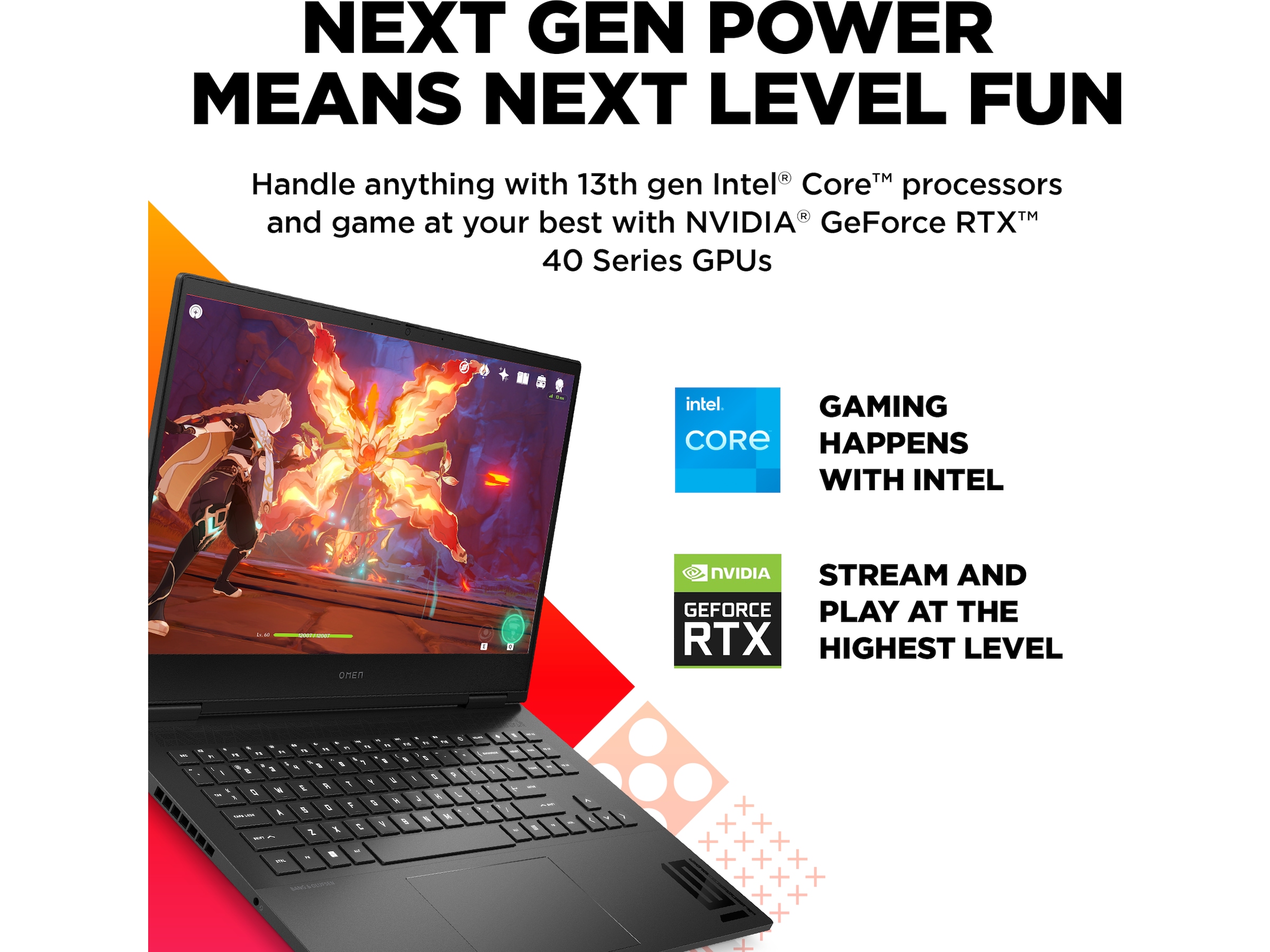 En OMEN 16-tommers bærbar gaming-PC er klartil bruk uansett hvor du er. Få stasjonær ytelse med en 13. generasjons Intel® Core™-prosessor og et moderne NVIDIA®-grafikkort, begge regulert av forbedret intern kjøling. Skjermen erlike imponerende med høy oppløsning, jevne bildefrekvenser og antirefleksfunksjoner.