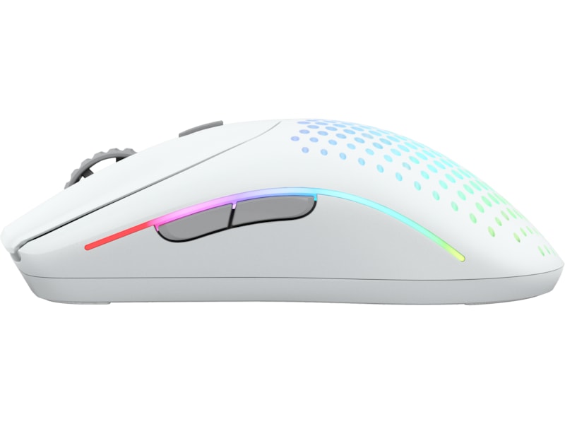 Model O Wireless er en av verdens letteste trådløse spillmus med en vekt på kun 68 gram. Musen har det prisvinnende og ultralette skallet til Model O 2 og en nyoppgradert sensor i form av Glorious sin egen BAMF 2.0-Sensor med en oppløsning på 26 000 dpi. Du vil knapt føle hullene når du spiller, men de gir ventilasjon for å holde håndflatene kjølige og friske. Musen har en batterilevetid på opptil 110 timer med 2,4Ghz trådløs og 210 timer med Bluetooth 5.2 LE. RGB-en settes enkelt inn i Glorious CORE-programvaren.
