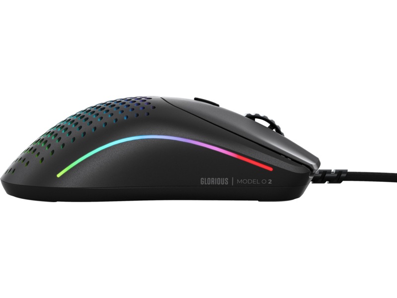 Overflatestrukturen på Model O 2 har et gripere belegg, noe som forhindrer at hendene sklir i intense øyeblikk.