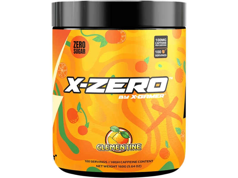 X-GAMER X-Zero 160 gram Clementine inneholder ingen sukker, ingen kalorier og ingen fett. Ett perfekt valg for de som krever en smaksrik «Boost» uten noen uønskede tilsetningsstoffer.