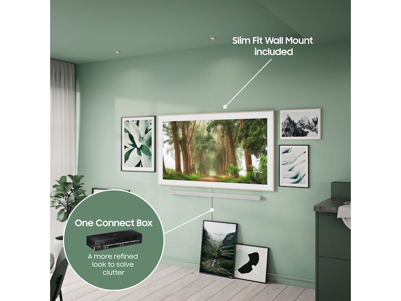 The Frame er ikke designet for å se ut som en TV, men som en moderne bilderamme. Den smale formen og den ensfargede baksiden gjør at den tar seg flott ut fra alle vinkler. Heng TV-en nærmere veggen enn noen gang med Slim Fit Wall Mount.