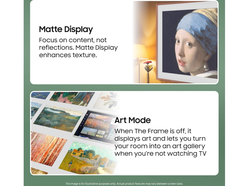 Når The Frame er slått av, viser den kunst og gjør at du kan forvandle rommet til et kunstgalleri når du ikke ser på TV.