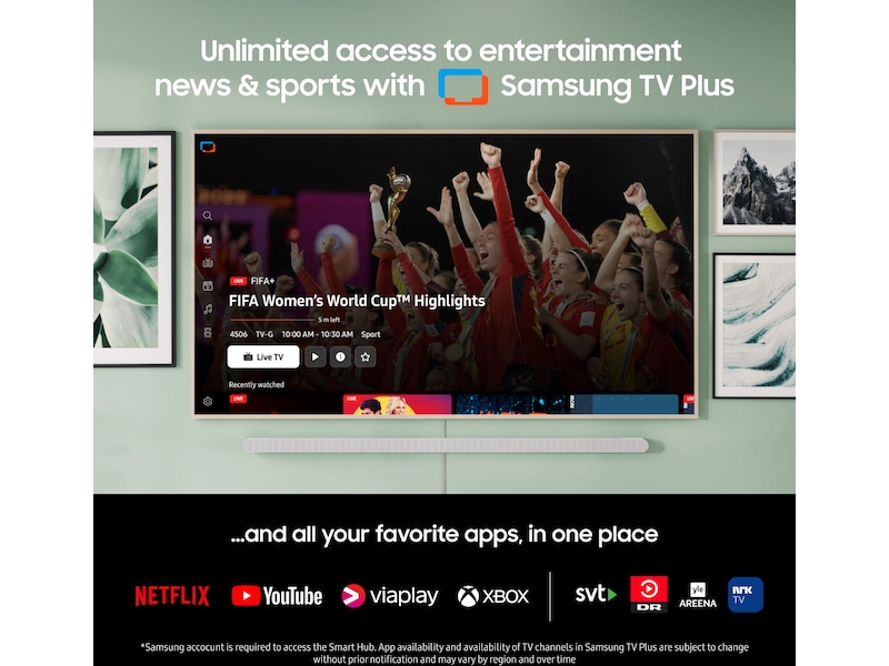 Kostnadsfri tilgang til filmer, serier, sport og nyheter med Samsung TV Plus.