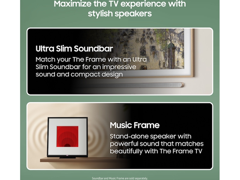 Ta TV- og musikkopplevelsen til nye høyder med Samsungs nye tilpassbare høyttalere som smelter inn med innredningen. For en dyp og fyldig lyd kan den kombineres trådløst med TV-en og soundbaren. Og med Q-Symphony samarbeider den med TV-høyttalerne for en komplett lydopplevelse.*