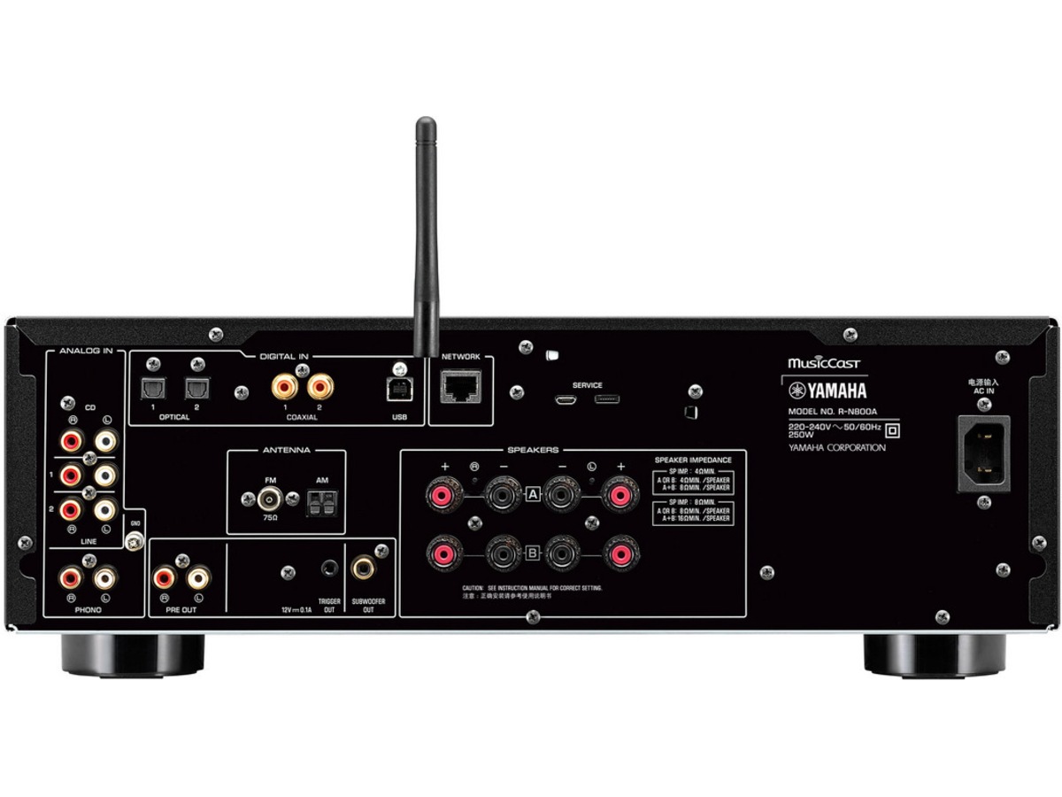 Mikrofon (YPAO) - foran, USB (9 pin USB Type B) - bak, 4 x lydinngang - bak, Basshøyttaler-utgang - bak, 2 x digital lydinngang (koaksial) - bak, Hodetelefonsutgang - foran, 4 x utgang høyttalere - bak, LAN (RJ-45) - bak, Utløser - bak, 2 x digital lydinngang (optisk) - bak, Forhåndsutgang - bak