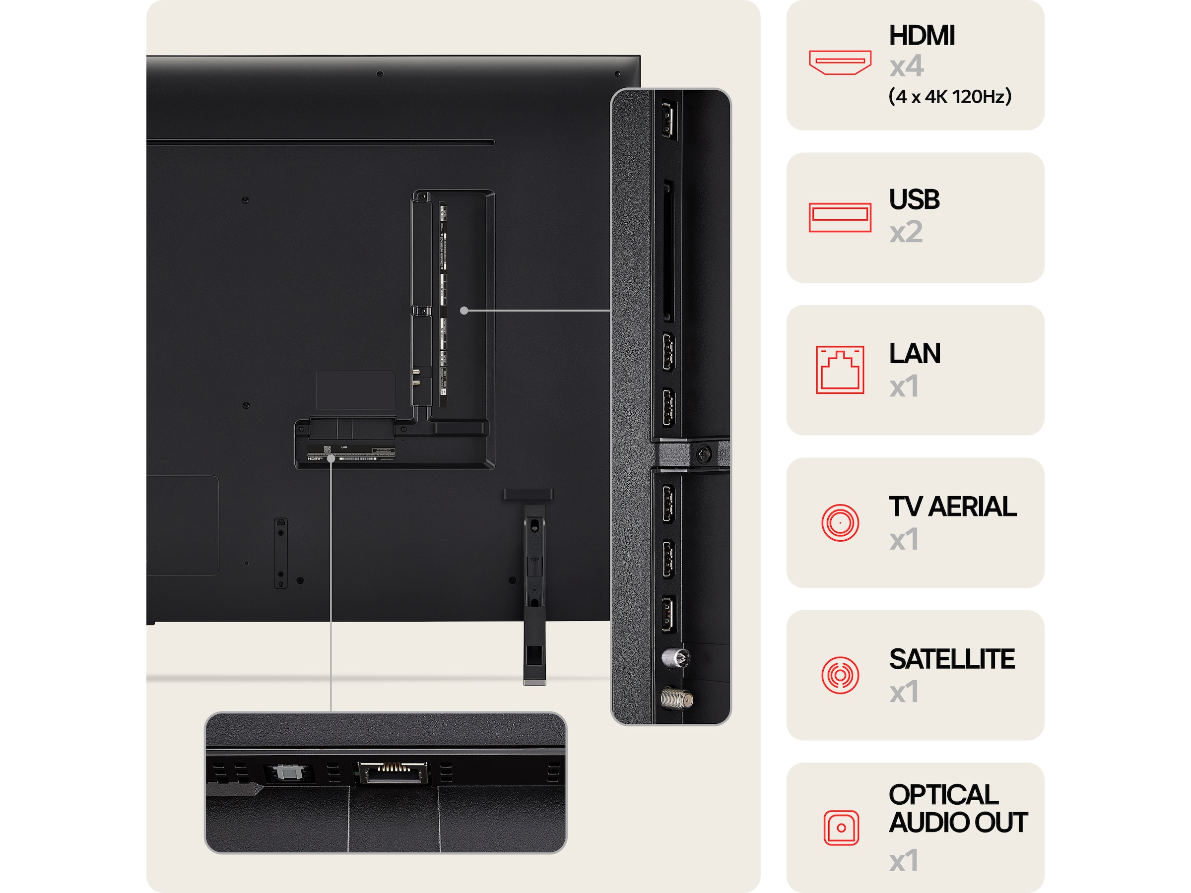 4K High Frame Rate (HFR), Game Dashboard, Freesync, Always Ready, Smarttelefon fjernstyrt, Støtte for USB-nettkamera, AI Brightness Control, Family Settings, AI Genre Selection, Boosteroid, Støtte for Apple AirPlay 2