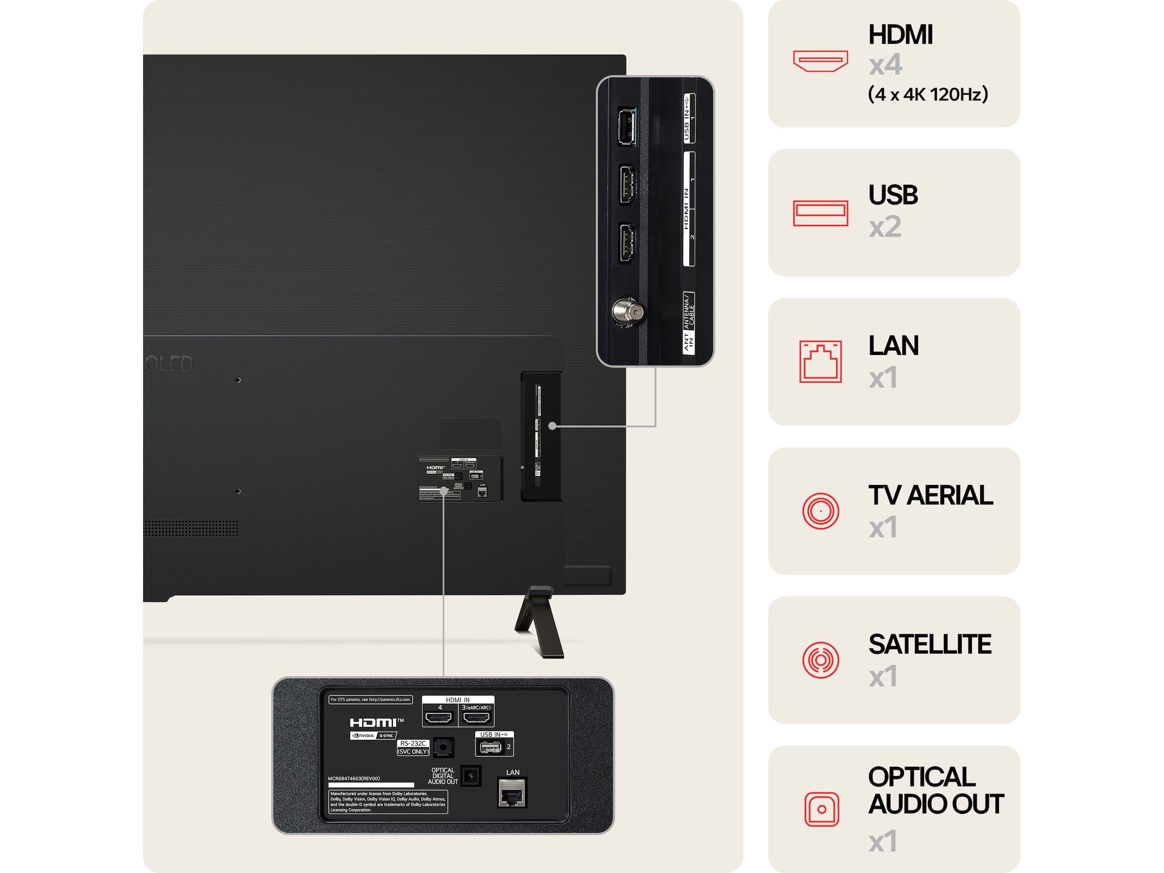 AI Genre Selection, Freesync, 4K High Frame Rate (HFR), G-SYNC Compatible, Family Settings, AI Picture Wizard, Støtte for Apple AirPlay 2, AI Concierge, Game Dashboard, Always Ready, AI Brightness Control, Cloud Gaming, Støtte for USB-nettkamera