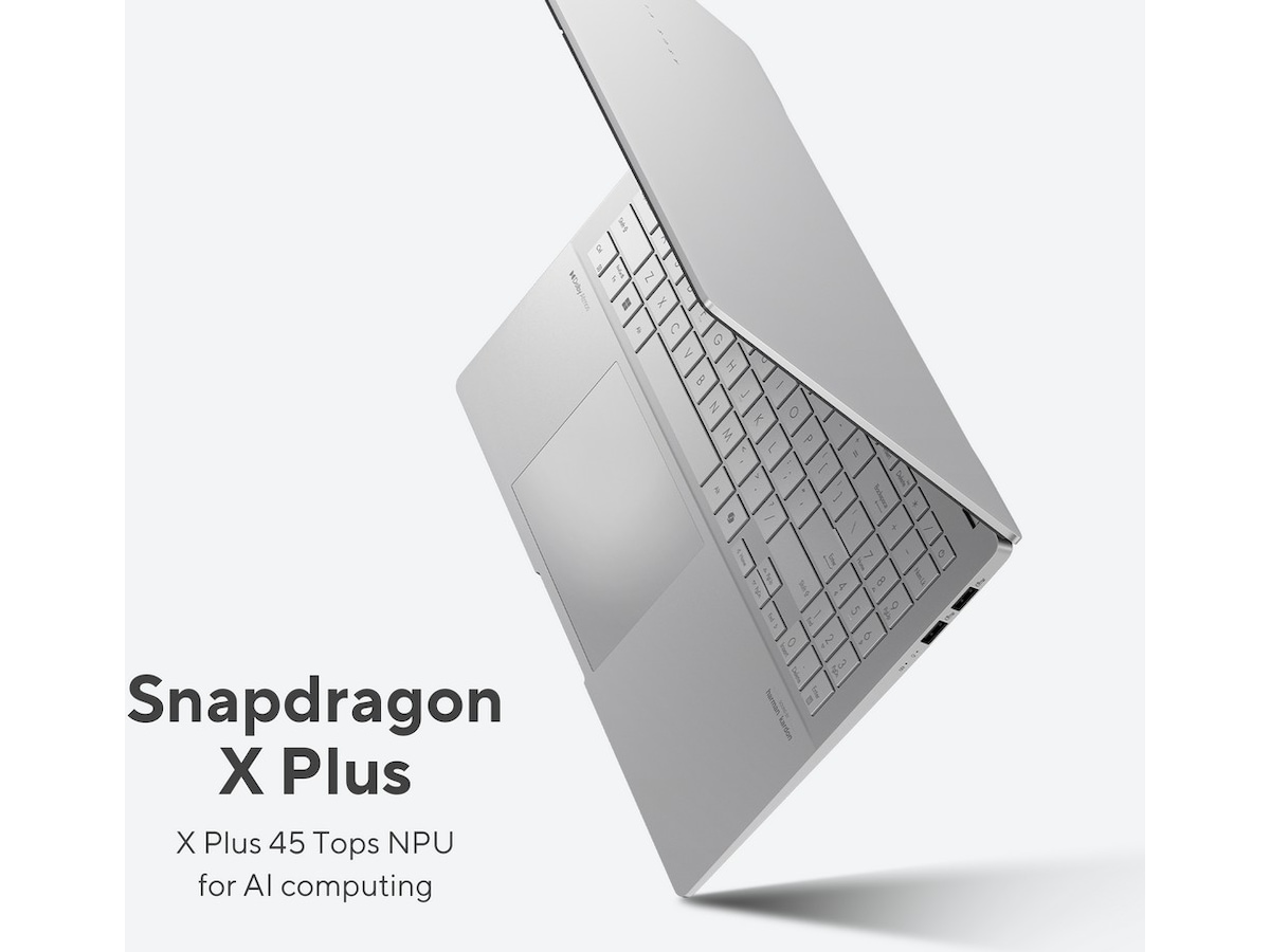- ASUS Copilot+ PC-en med en kraftig Snapdragon® X Plus-prosessor med en dedikert 45 TOPS NPU og Qualcomm® AI Engine for å utforske flere AI-funksjoner.