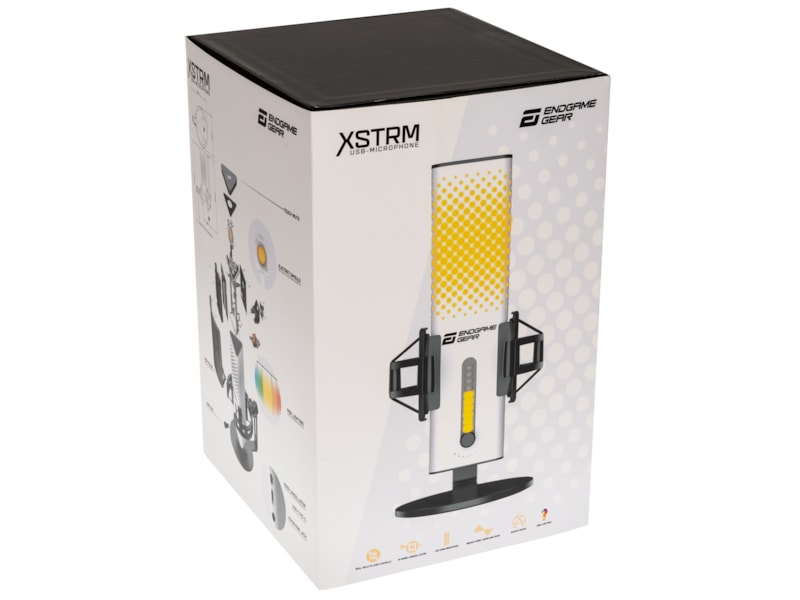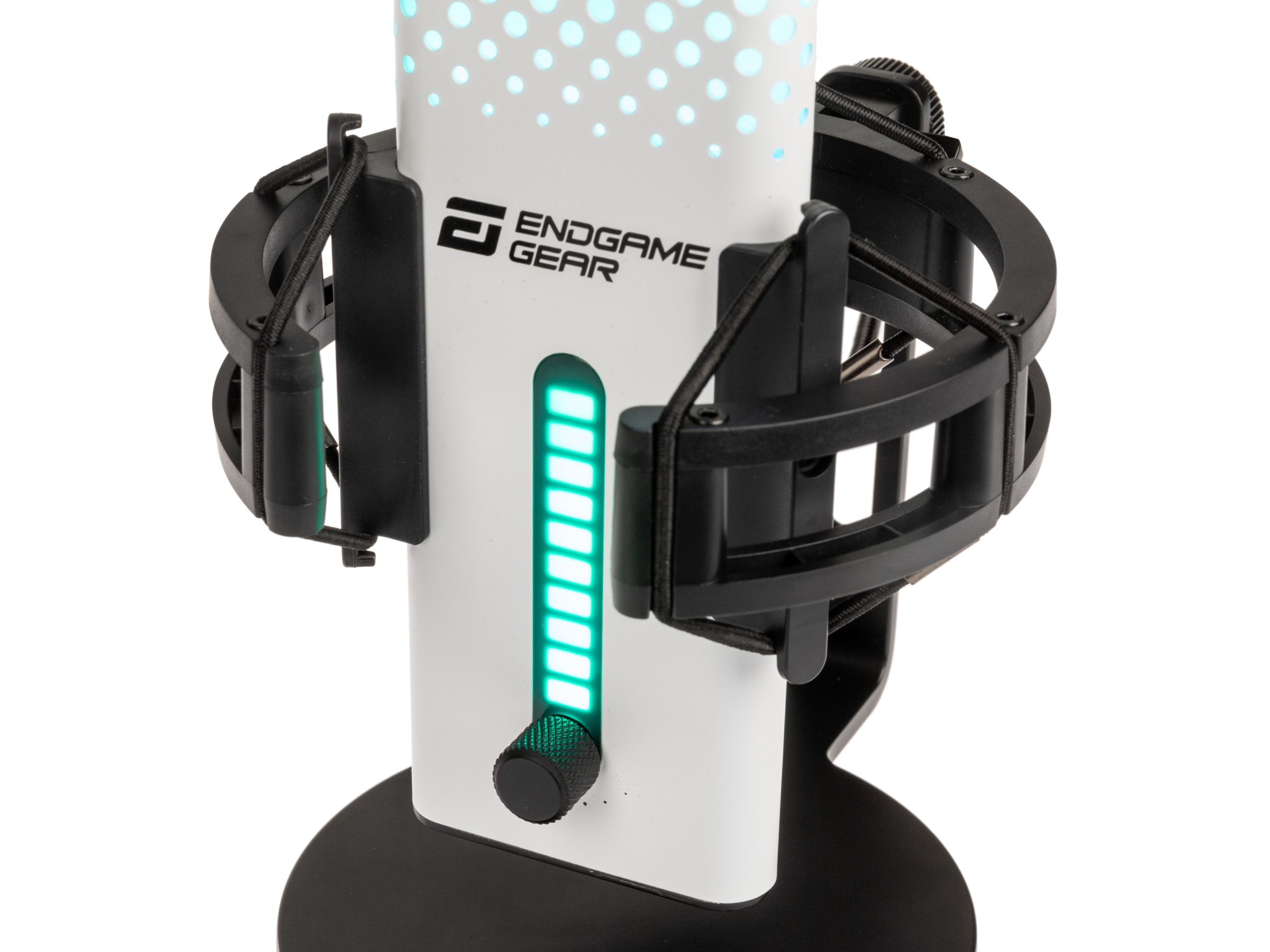 Lys opp stemmen din. Endgame Gear XSTRM USB Microphone kombinerer unik design og lydopptak i studiokvalitet. Den integrerte RGB-belysningen er ikke bare iøynefallende, LED-forsterkningsindikatoren gir deg også beskjed hvis stemmen din er overmodulert. Det har aldri vært enklere å oppnå perfekt opptakskvalitet.
