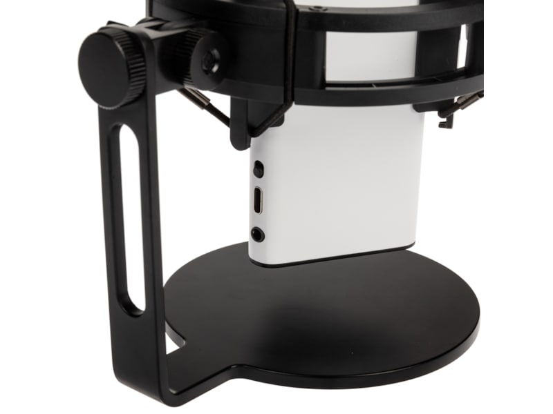 Et metallstativ er også inkludert, som du kan bruke hjemme eller på farten. Vil du heller henge opp mikrofonen? Ikke noe problem. Den integrerte 3/8-tommers gjengen lar deg montere det på et hvilket som helst konvensjonelt stativ.