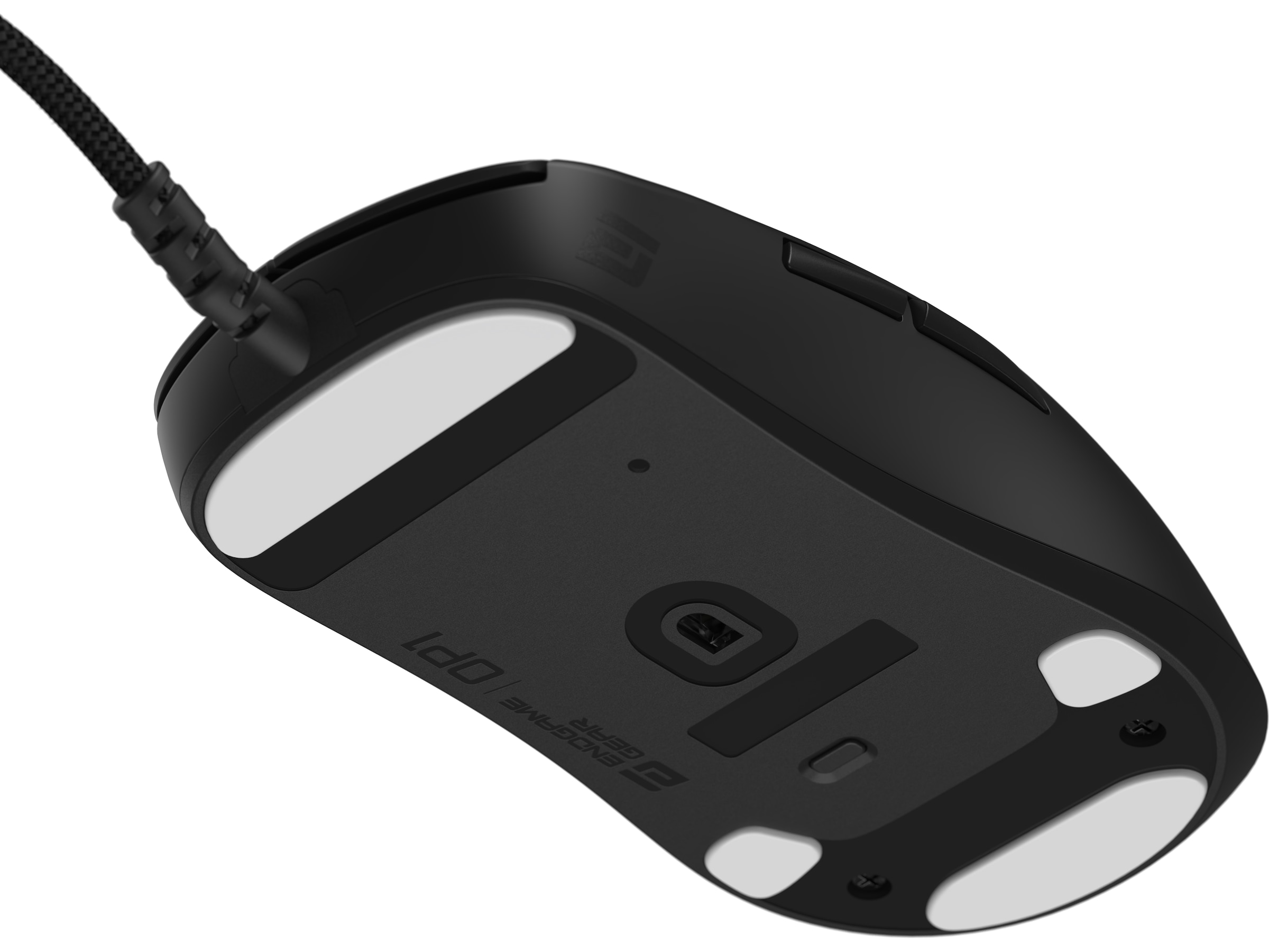 I likhet med preferansen for klikkefølelse er hvordan en gamingmus skal gli en vitenskap for seg selv, som også kan diskuteres avhenger av hvilken sjanger du spiller mest. OP1 kommer med vår såkalte Hybrid Skate Design. Det betyr at vi rett ut av esken valgte et mindre skøytesett som tilbyr en flott balanse mellom overflate, vekt og glideegenskaper. I tillegg legger vi til et større skøytesett og en sensorskøyte i emballasjen, noe som er gunstig spesielt for mykere musematter. Hvis du ønsker å minimere overflateområdet til museskøytene, for eksempel for bruk på en glasspute, gir de store skøytesporene på OP1 deg mange muligheter for å plassere favorittskøytene dine. Skruene i bunnplaten kan nås for å åpne musen og endre hovedknappbryterne uten å ta av skøytene.