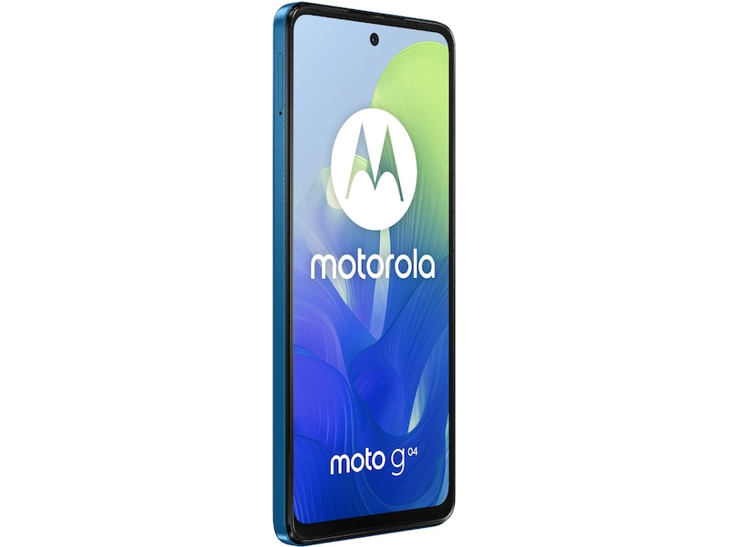 Underholdningen du har lyst på. Stilen du ønsker. Dette er moto g04. Den er slank og elegant, og er laget av førsteklasses materialer og designet for å se fantastisk ut. Med vakre detaljer og fire morsomme farger å velge mellom finnes det mye å elske. Nyt show og filmer på en raskt forfriskende, hakkløs 6,56" 90Hz (2) skjerm med modus for høy lysstyrke – støttet av Dolby Atmos® (3)-lyd. Ta bilder klare for sosiale medier med et 16 MP AI-drevet kamera. Bruk RAM Boost (3) for å gjøre lagring om til virtuell RAM for jevnere multitasking. Lås opp med et blikk eller en enkel berøring. Og fortsett å jobbe eller spill lenger på bare én enkelt lading med det 5000 mAh-batteriet. moto g04 er laget for å bevege deg.