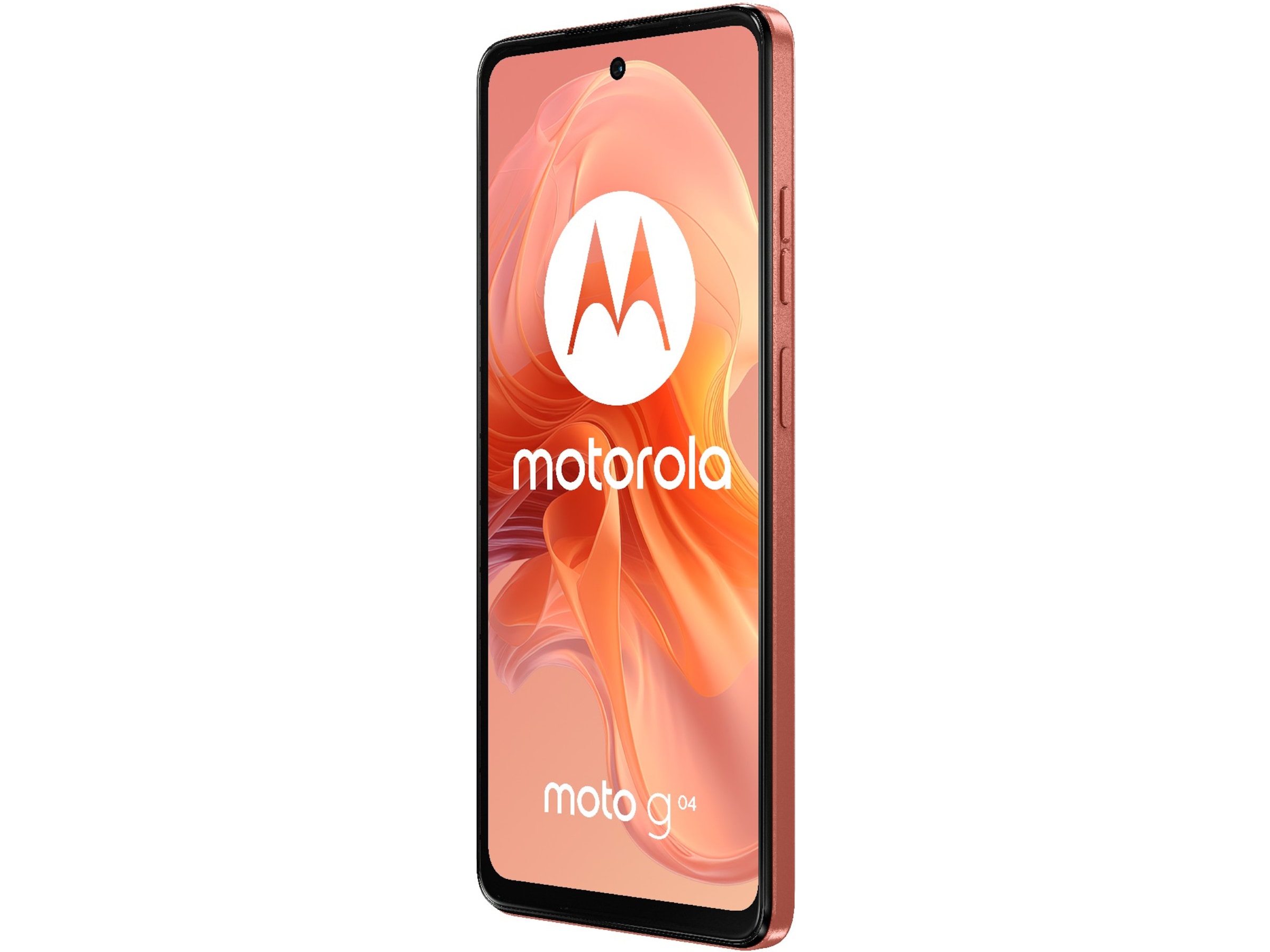 Underholdningen du har lyst på. Stilen du ønsker. Dette er moto g04. Den er slank og elegant, og er laget av førsteklasses materialer og designet for å se fantastisk ut. Med vakre detaljer og fire morsomme farger å velge mellom finnes det mye å elske. Nyt show og filmer på en raskt forfriskende, hakkløs 6,56" 90Hz (2) skjerm med modus for høy lysstyrke – støttet av Dolby Atmos® (3)-lyd. Ta bilder klare for sosiale medier med et 16 MP AI-drevet kamera. Bruk RAM Boost (3) for å gjøre lagring om til virtuell RAM for jevnere multitasking. Lås opp med et blikk eller en enkel berøring. Og fortsett å jobbe eller spill lenger på bare én enkelt lading med det 5000 mAh-batteriet. moto g04 er laget for å bevege deg.