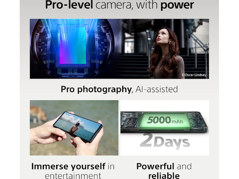 Utrolig nok er den nye skjermen 1,5 ganger lysere enn den forrige modellen. Den nye Sunlight Vision-funksjonen på vår nyeste Sony-telefon håndterer skjermens synlighet i omgivelser med mye lys, og gjør ikke bare bildet lysere, men utfører også KI-bildebehandling for å forhindre overeksponert høylys ved å analysere bildene og lysstyrken i omgivelsene i sanntid.