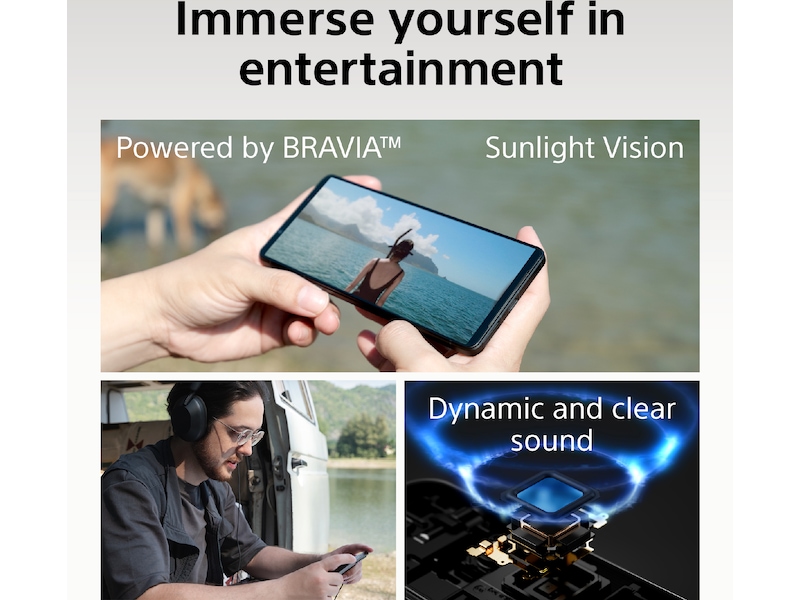 Med en ny Premium Audio Circuit for 3,5 mm kablede hodetelefoner, en ny høyttaler med høyere ytelse og innovative lydteknologier gir Xperia 1 VI all musikken din den plassen, klarheten og kvaliteten den fortjener, via kablede eller trådløse hodetelefoner eller Full-stage stereohøyttalerne.