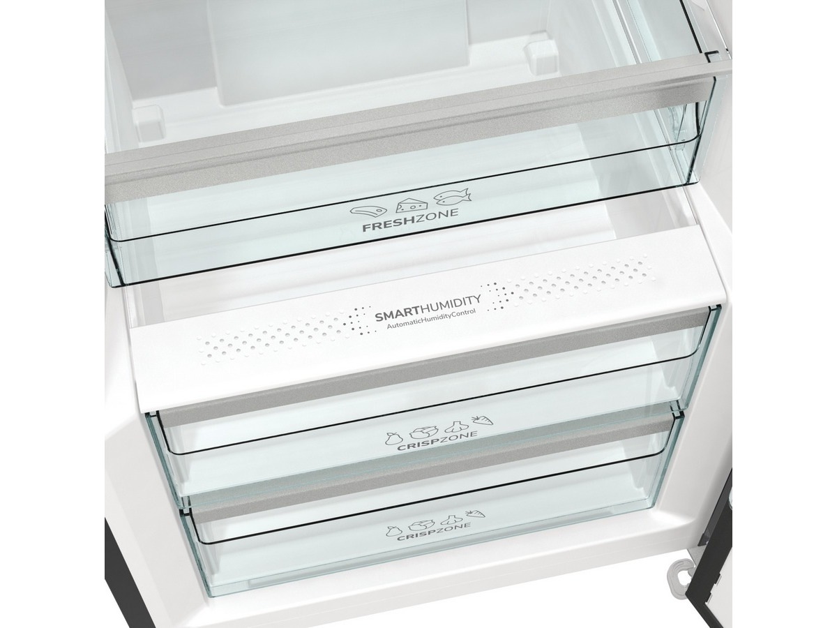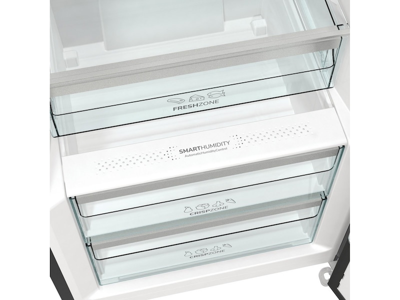 Flaskeholder, 4 x hylle - justerbart glass, 2 x hylle - glass, Skuff - CrispZone med fuktighetskontroll