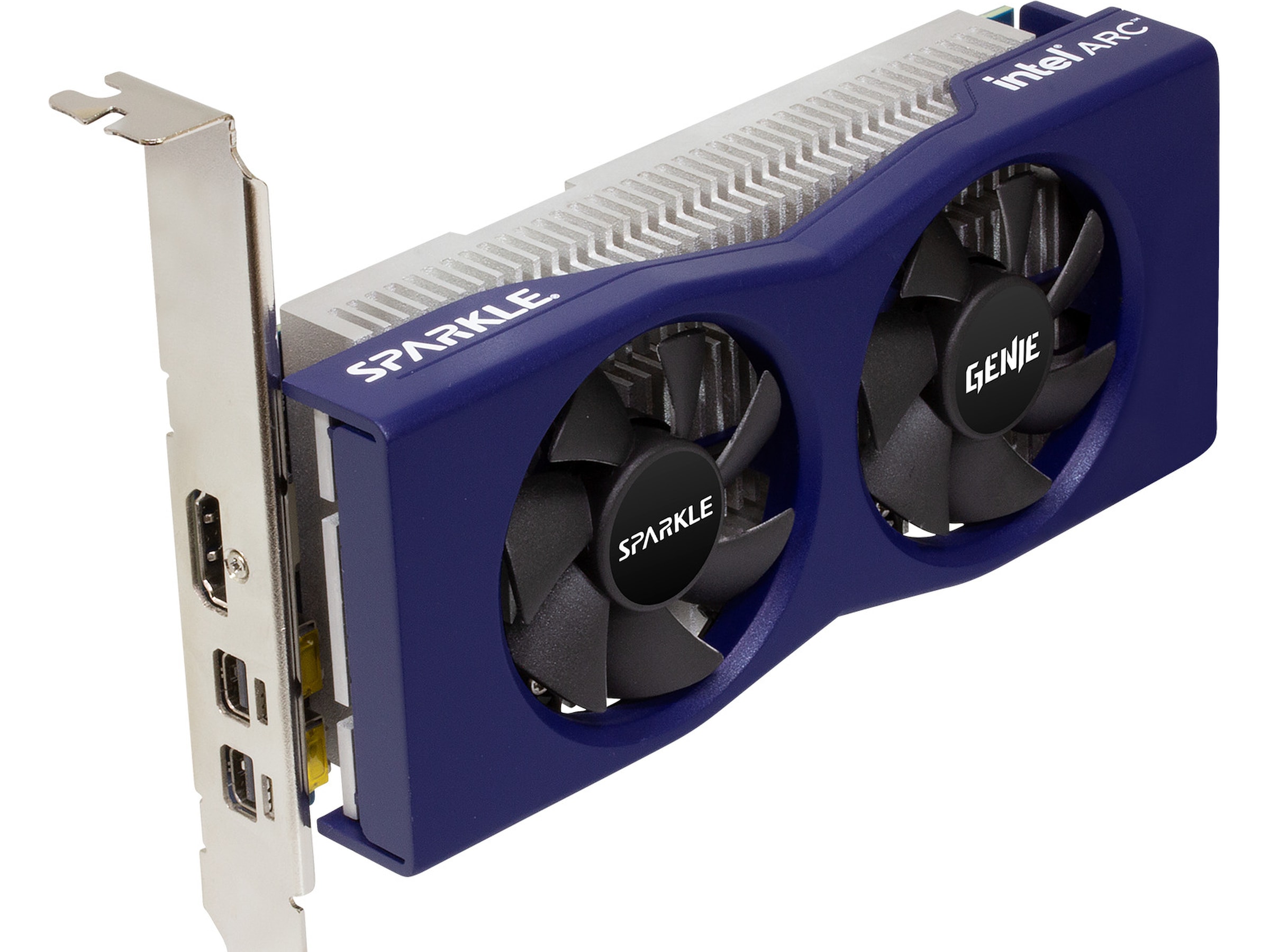 Sparkle Intel Arc A380 Genie Free short bracket is included Low-profile, dual-slot, dual-fan design 2x mini-Displayport, 1x HDMI 2.0