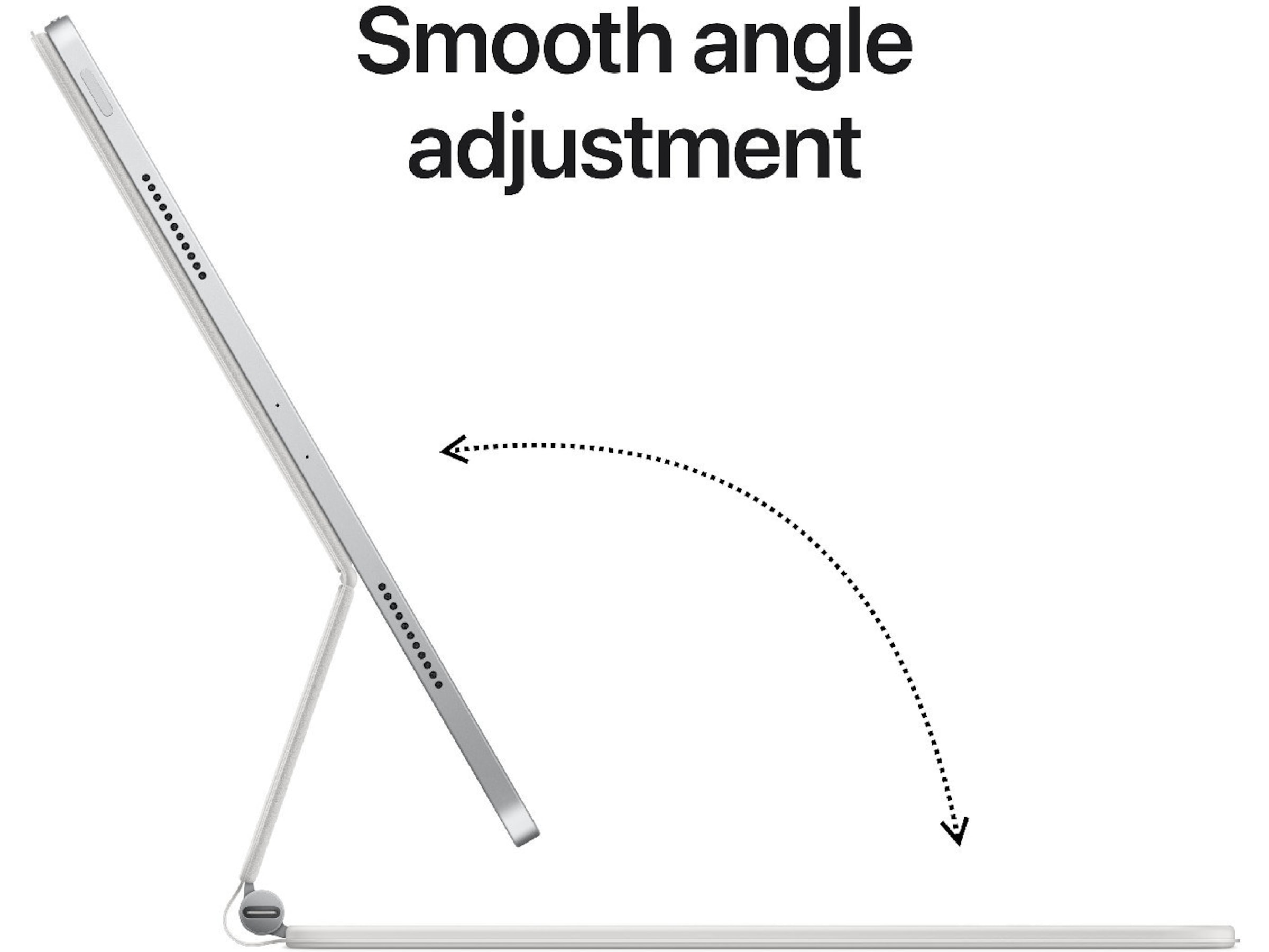 Med Magic Keyboard til iPad Pro får du en utrolig skrive- og styreflateopplevelse med en elegant og bærbar ny design med håndleddstøtte av aluminium. Tastaturet har en funksjonsrad med 14 taster for rask tilgang til kontroller for lysstyrke, volum og andre funksjoner, og en USB-C-tilkobling for gjennomgående lading. Den selvbærende designen gjør det enkelt å velge blant flere visningsvinkler.