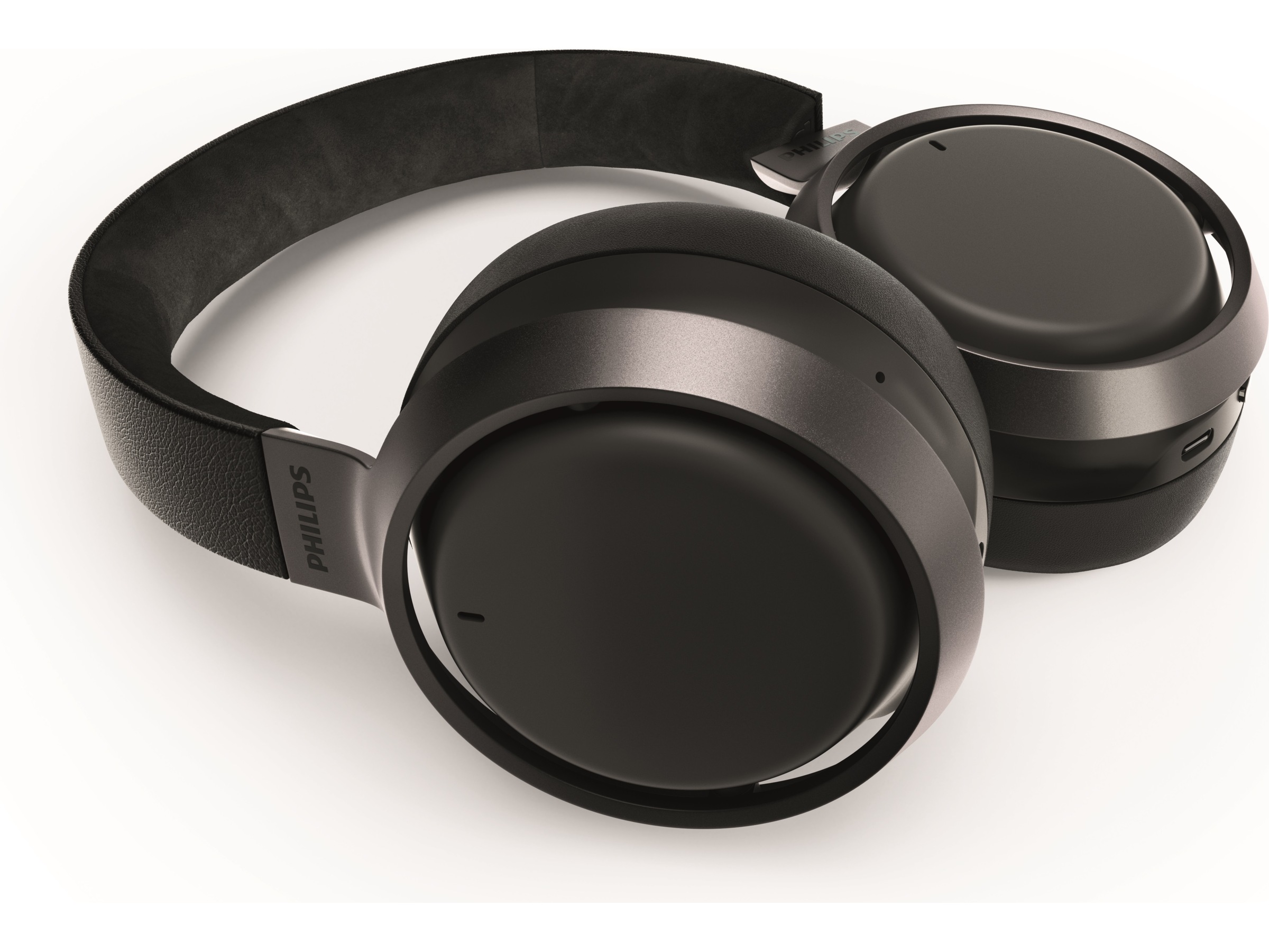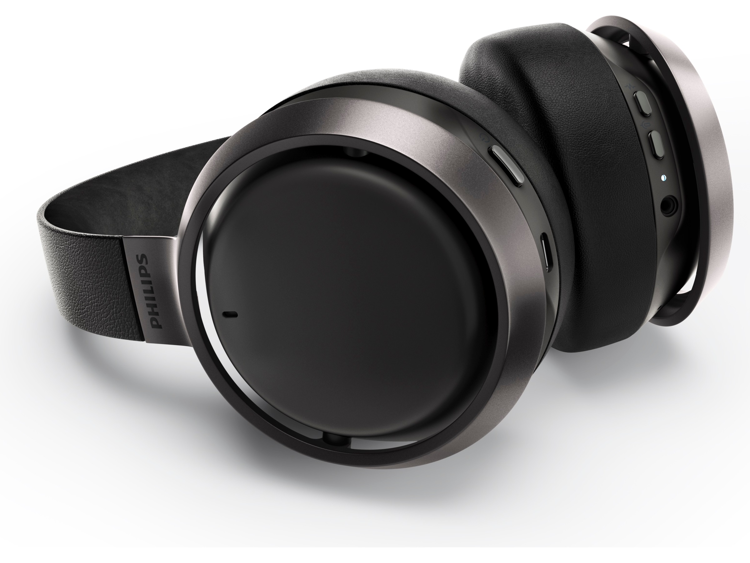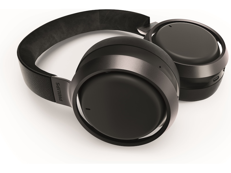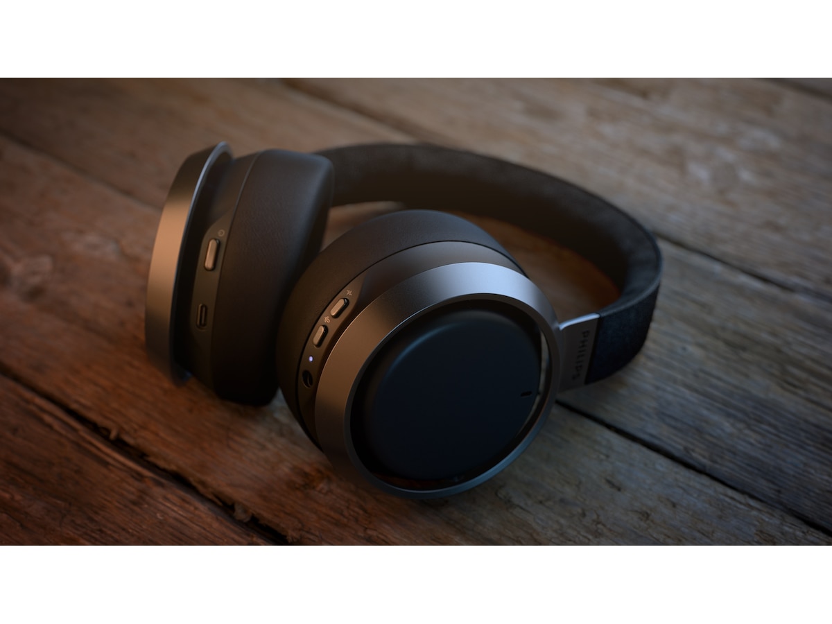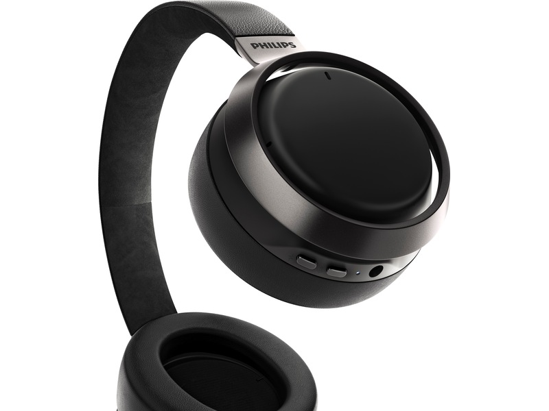 Lett aluminium og Muirhead-skinn fra bærekraftige og etiske kilder sørger for at disse trådløse hodetelefonene føles like flotte som lyden. Aluminiumsringene rundt ørekoppene er i fargen mørk, matt sateng, med Philips Fidelio-logo. Musikken stopper automatisk når du tar av hodetelefonene.