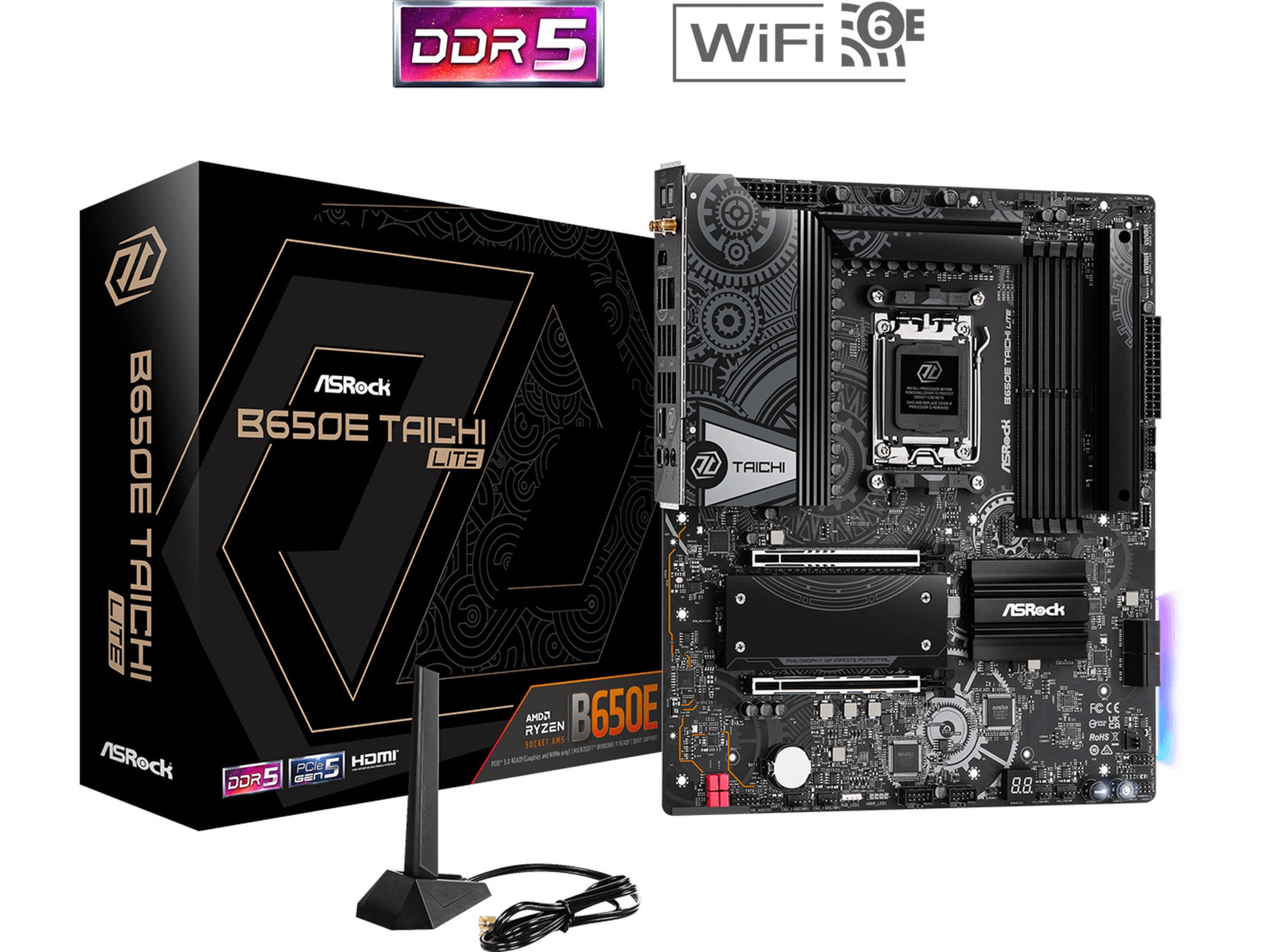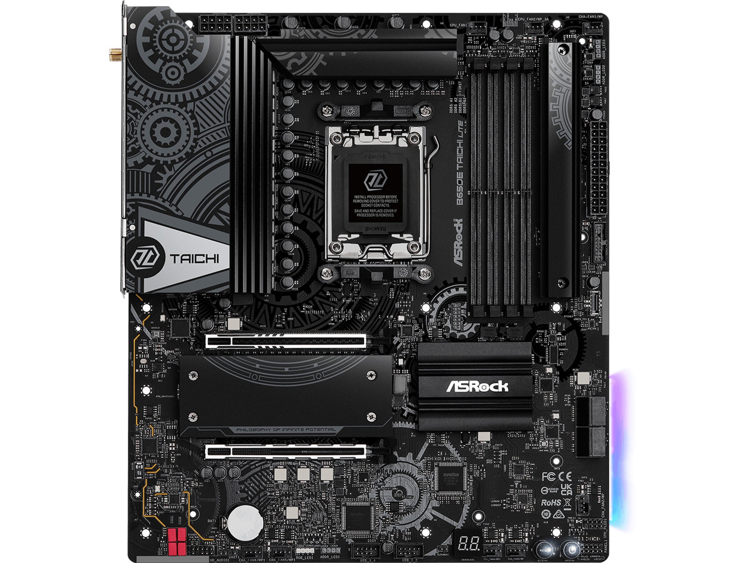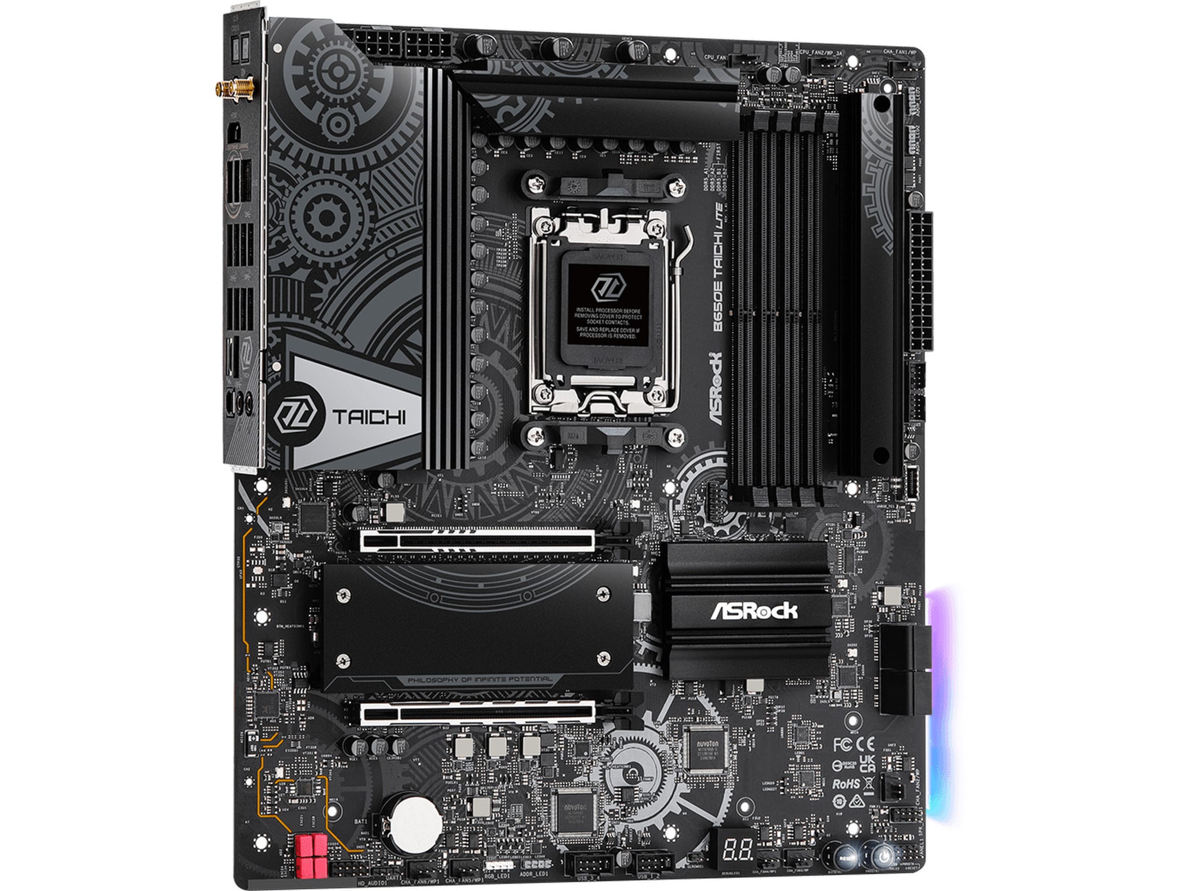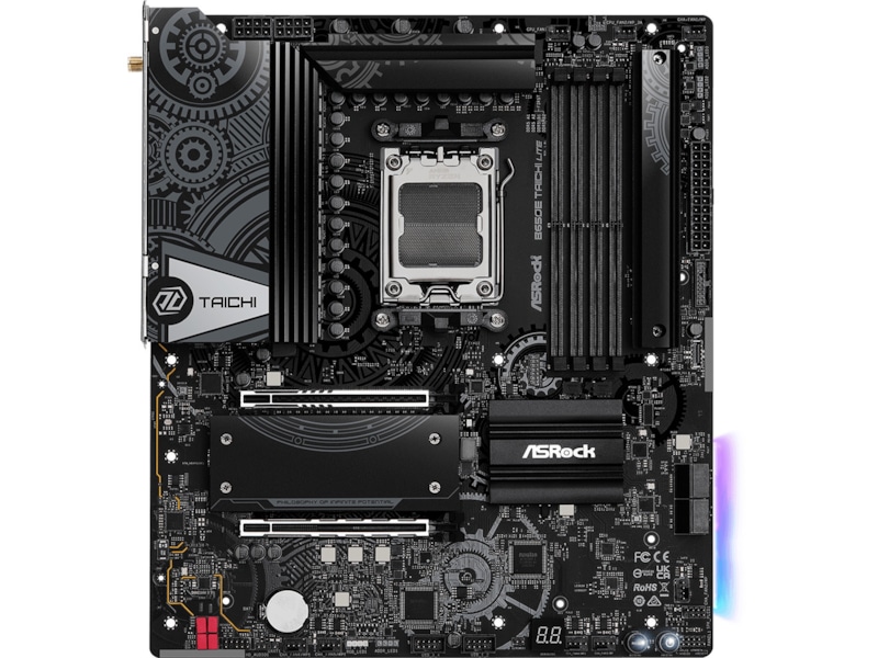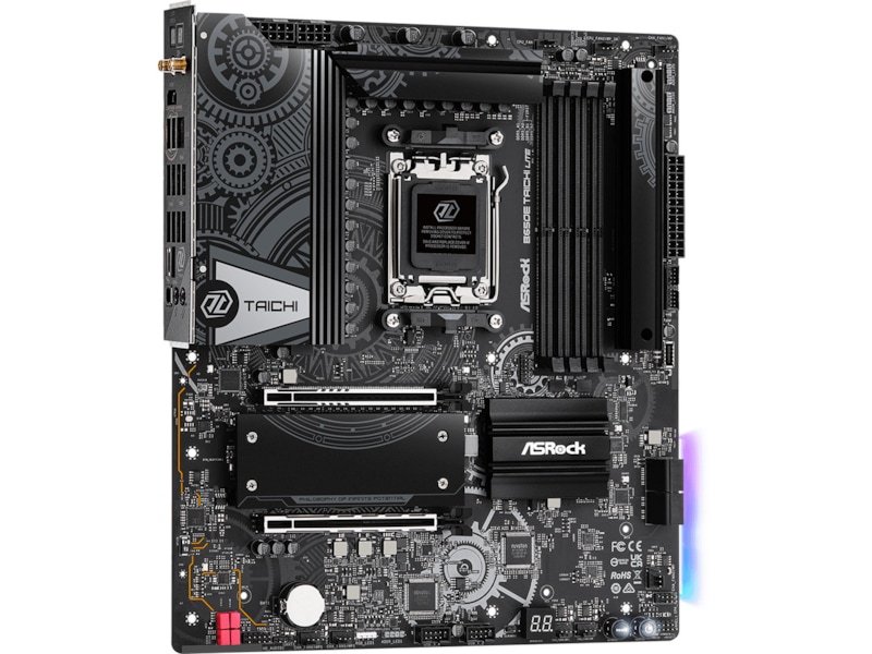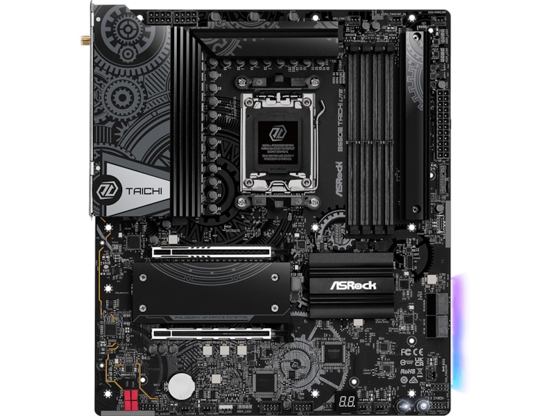 2 x M.2 socket (2280 M.2 Key M-spor), 4 x 288-pins DIMM, 1 x CPU, 1 x M.2 socket (2230 M.2 Key E-spor), 1 x M.2 socket (2230/2242/2260/2280/22110 M.2 Key M spor), 1 x PCIe 4.0 x16 (x4-modus (automatisk avslåing hvis 3. M.2 er opptatt)), 1 x PCIe 5.0 x16