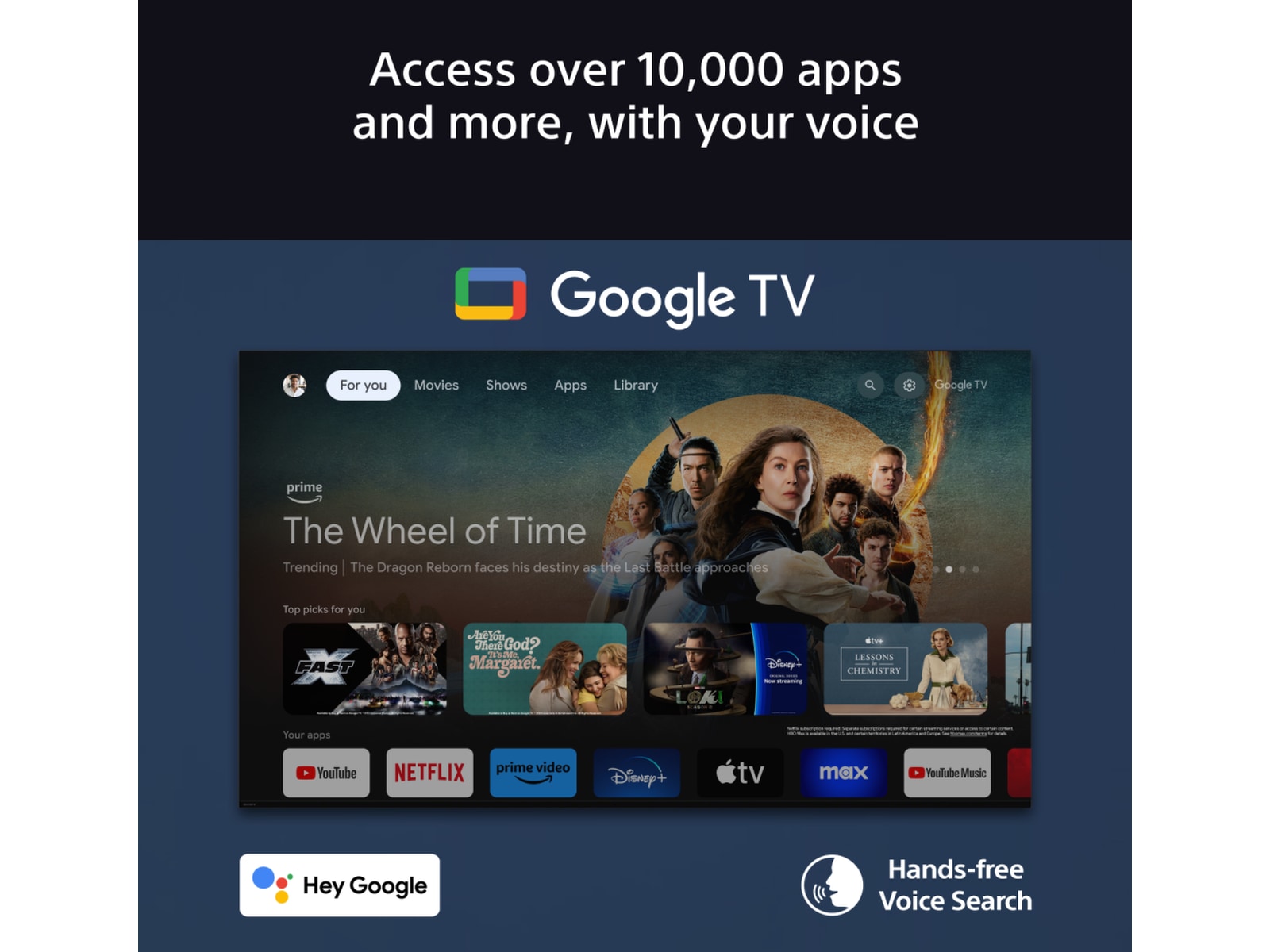 Prime Video, Bravia Core, Voice Search, Apple TV, Netflix, YouTube, Crunchyroll