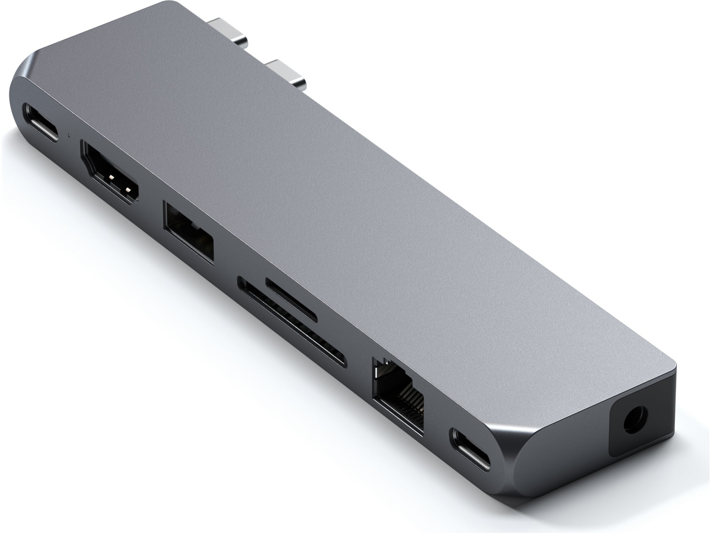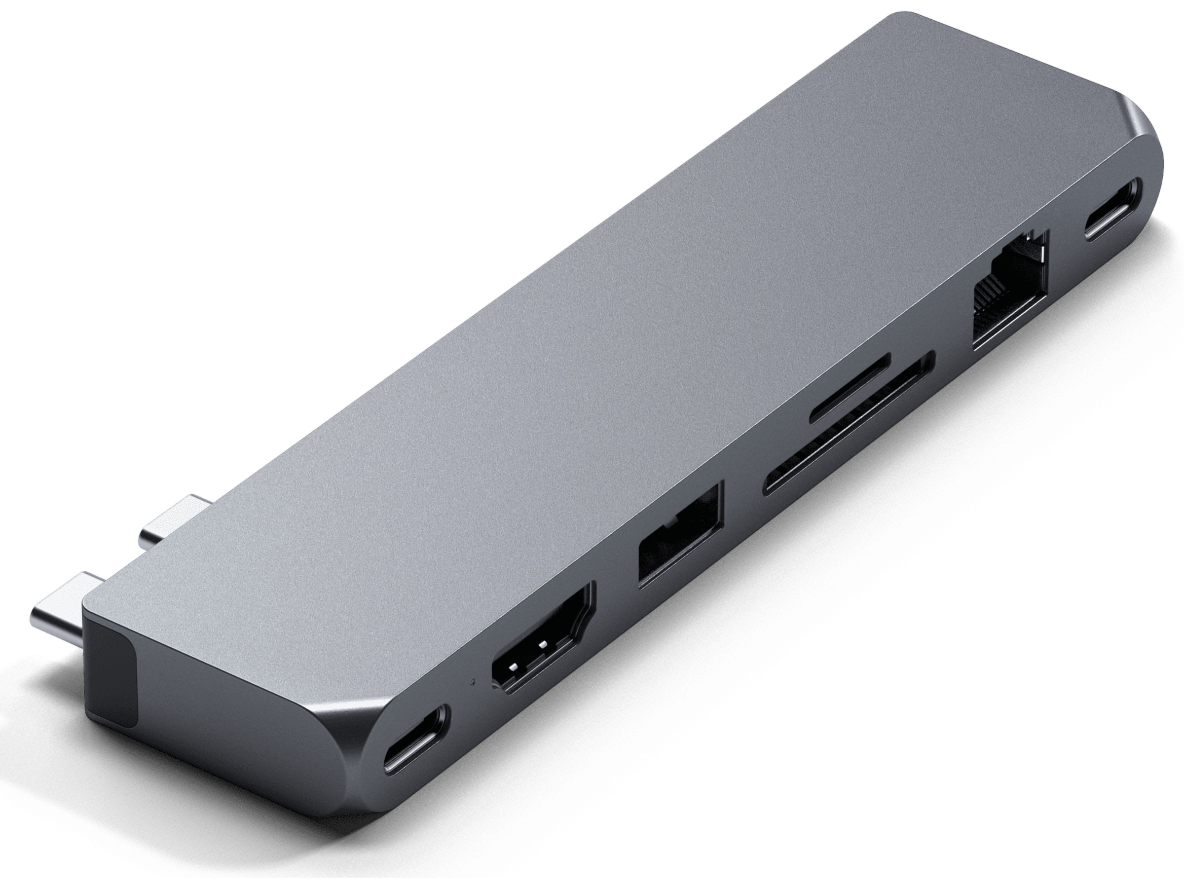 Satechi Pro Hub Max er din ultimate følgesvenn for MacBook Pro. Med en fullt funksjonell USB-C PD-port, 4K HDMI-utgang, Gigabit Ethernet, USB-C-data, USB-A-data, micro/SD-kortlesere og en lydutgangsport, gir huben et hav av porter slik at du kan jobbe på ditt beste. Med sine to USB-C-kontakter og moderne aluminiumsfinish, festes Pro Hub Max sikkert til Mac-en din for en ren og elegant oppsett. Enkelt og greit, plug and play for å fullføre opplevelsen med din MacBook Pro.