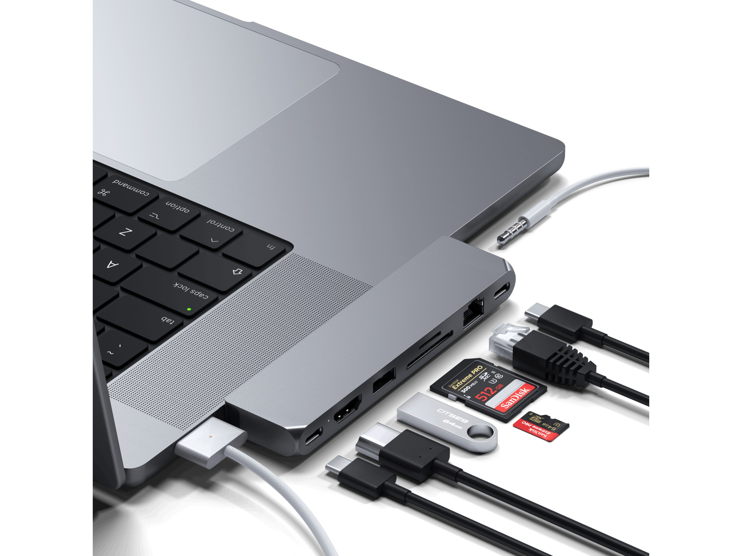 Bygget spesielt for 2021 MacBook Pro M1 Pro & Max, utvider Pro Hub portalternativene dine med USB-C PD, 4K HDMI (opptil 60Hz), Gigabit Ethernet, USB-C-data, USB-A-data, micro/SD-kortlesere og en lydutgang, slik at du kan jobbe slik du trenger.
