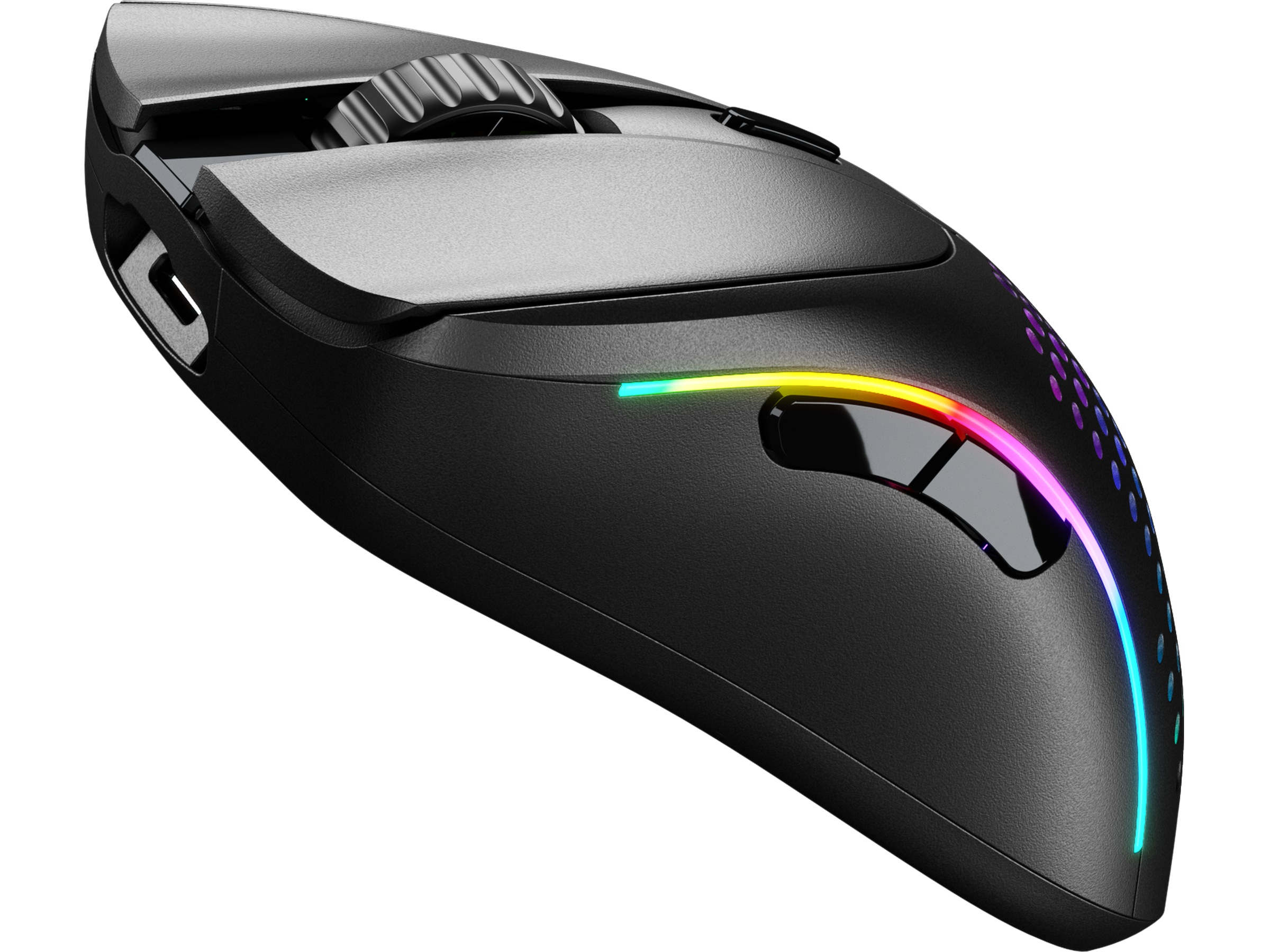Egenskaper Rullehjul, Glorious BAMF 2.0-sensor, Håndflategrep, PTFE G-Skates-museføtter, Klogrep, Ultralett, Glorious Switches, RGB 16,8-millioners flerfargebelysning, 3 innebygde minneprofiler, 6 programmerbare knapper, Ascended Cord, Motion Sync