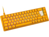 Ducky PBT Double Shot tastehetter er laget av polybutylenetereftalat, en slitesterk plast med lang levetid. PBT tåler høye temperaturer, løsemidler og friksjon, noe som betyr at kombinert med dobbel shot-legende vil disse tastehettene ikke slites selv ved tung bruk. I tillegg er dette materialet ideelt for bruk i varme fargebad, noe som gjør det mulig med den levende fargesammensetningen.