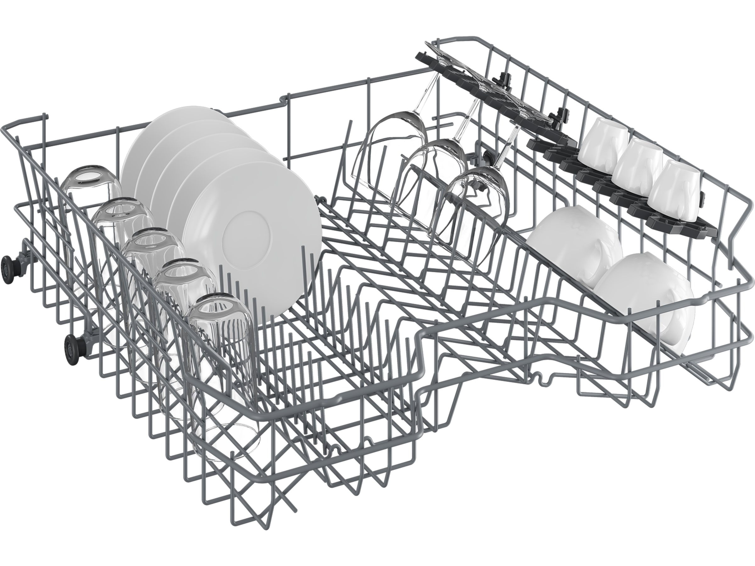 Hver gang du lager mat, bruker du panner og gryter i forskjellige størrelser, og du trenger en oppvaskmaskin som forstår dette. Med den foldbare tallerkenstøtten kan du lett fjerne tallerkenrom for å få plass til de største pannene og grytene. Det å måtte vaske de største gjenstandene for hånd hører fortiden til, og godt er det!