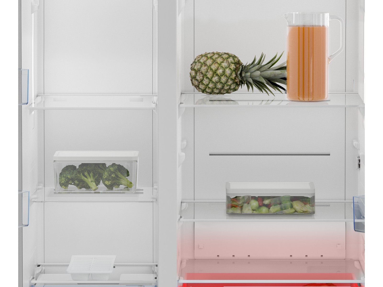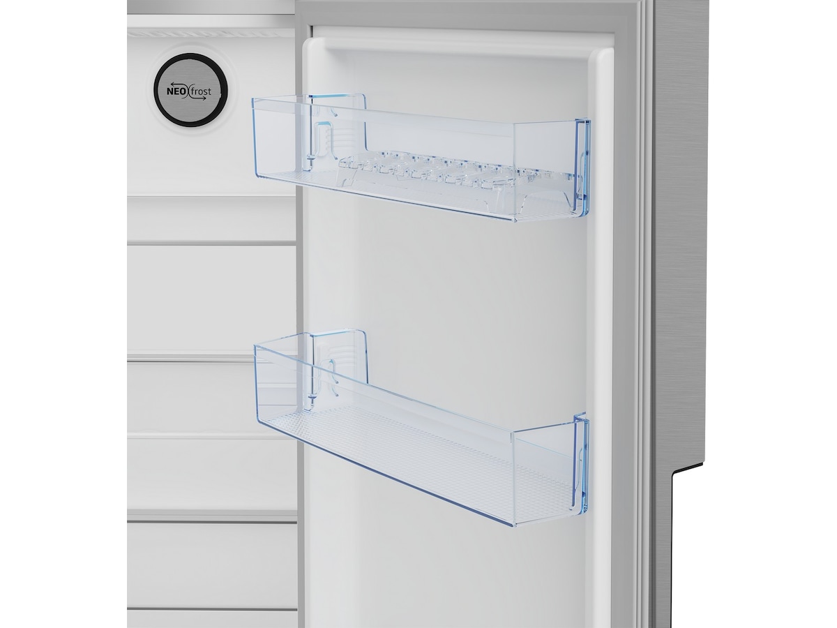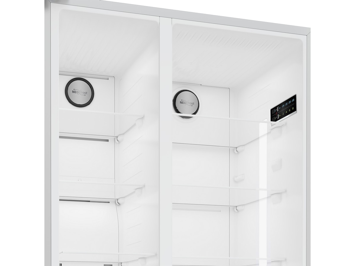 Beko NeoFrost-teknologi bruker to separate kjølesystemer for å opprettholde optimal fuktighet i kjøleskapet og et tørt frysemiljø. Denne teknologien motvirker effektivt luktoverføring mellom kjøleskap og fryser, og vil også forhindre at maten tørker ut i kjøleskapet. Ved å opprettholde et tørt frysemiljø eliminerer Neo Frost-teknologien isdannelse for å sikre at du aldri trenger å tine fryseseksjonen igjen. Denne tørrheten vil også hindre at maten fester seg sammen, slik at du enkelt kan finne og ta ut varene du trenger.