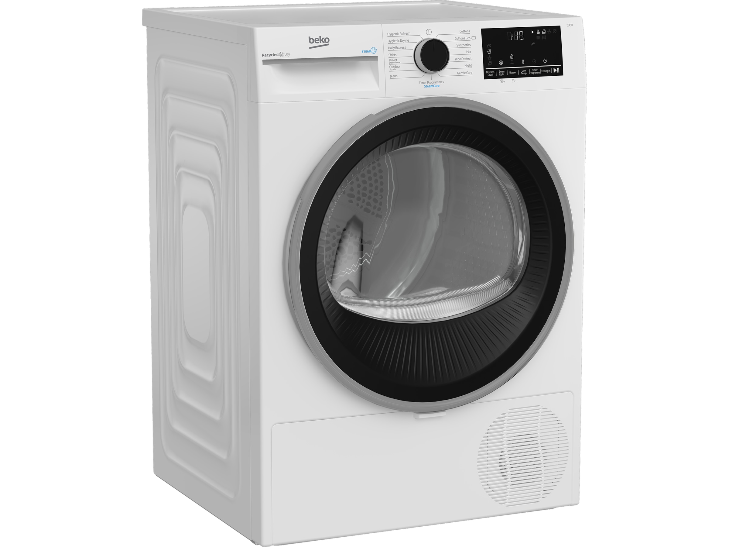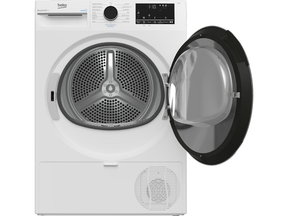 De viktigste innovasjonene Beko gjør nå er de som bidrar til mer bærekraftige produkter. Ett av tiltakene er å benytte mer resirkulert plast i produksjonen. Plastkomponentene i denne tørketrommelen består av minimum 27% resirkulert plast. I 2023 ble det totalt brukt over 5922 tonn* avfallsplast til dette formålet.