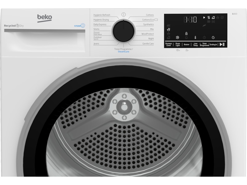 De viktigste innovasjonene Beko gjør nå er de som bidrar til mer bærekraftige produkter. Ett av tiltakene er å benytte mer resirkulert plast i produksjonen. Plastkomponentene i denne tørketrommelen består av minimum 27% resirkulert plast. I 2023 ble det totalt brukt over 5922 tonn* avfallsplast til dette formålet.