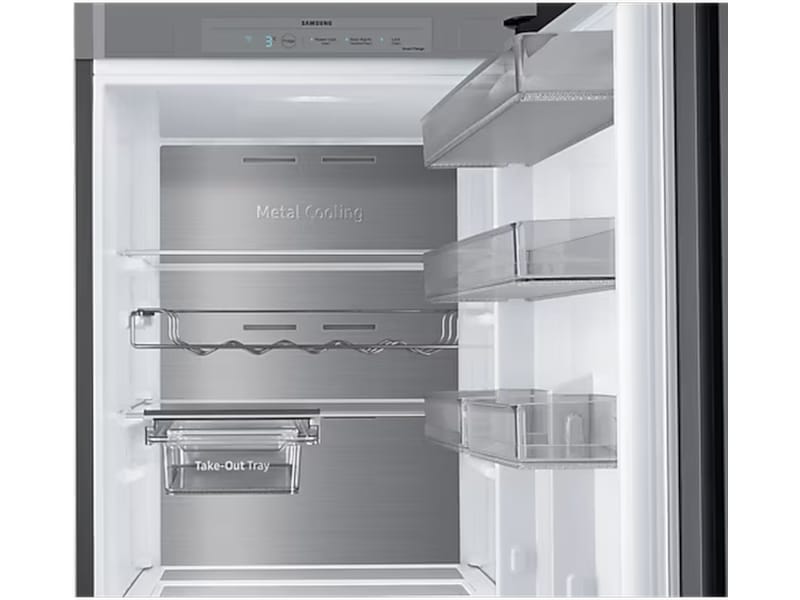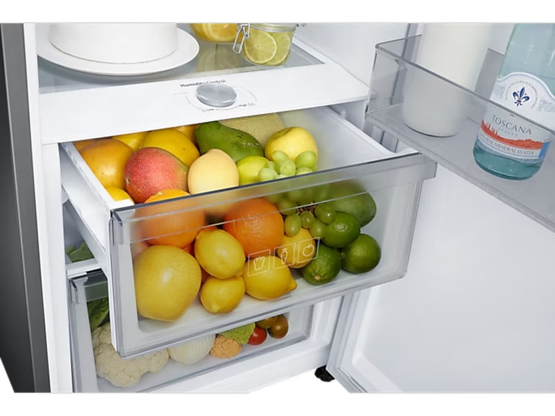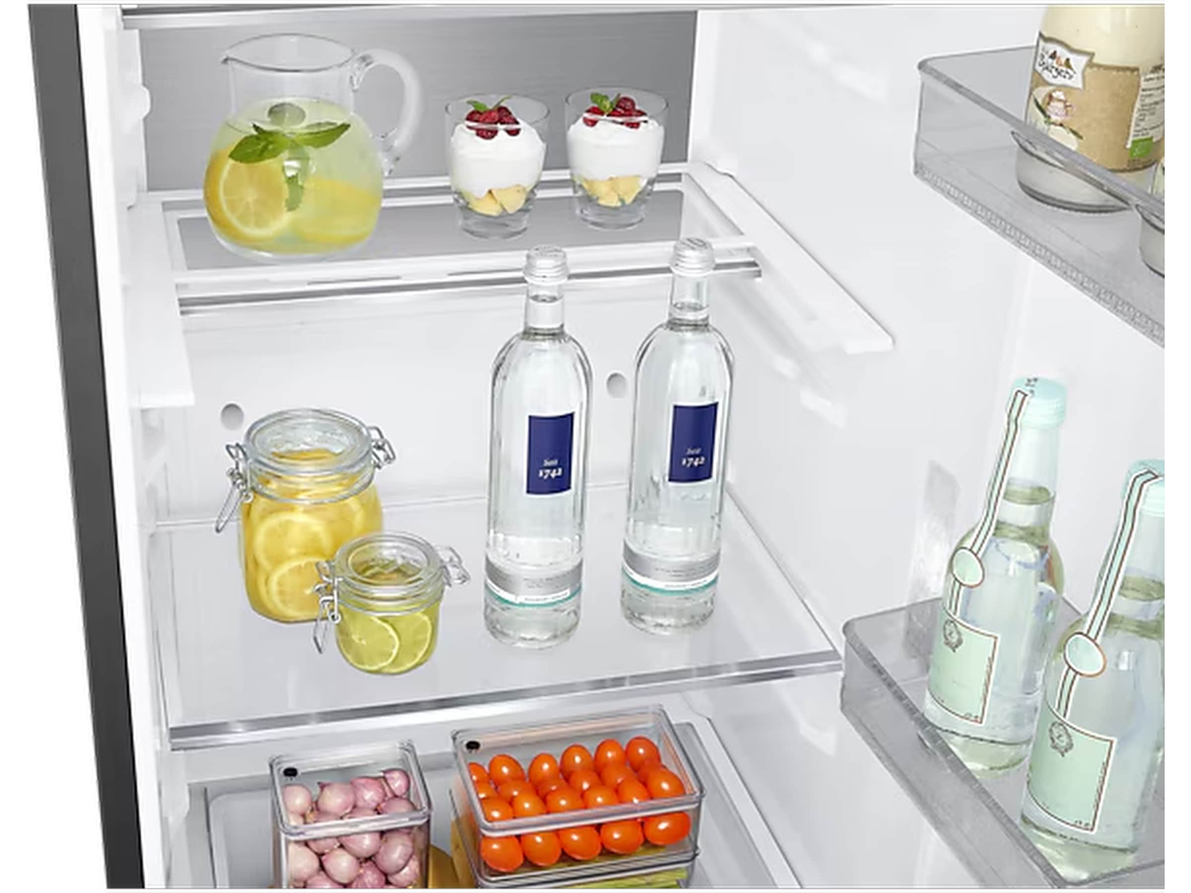 1 x hylle - foldbar, Dørhylle - justerbar, 1 x skuff - uttakbar, 1 x flaskestativ, 2 x grønnsaksskuff - fuktighetskontroll