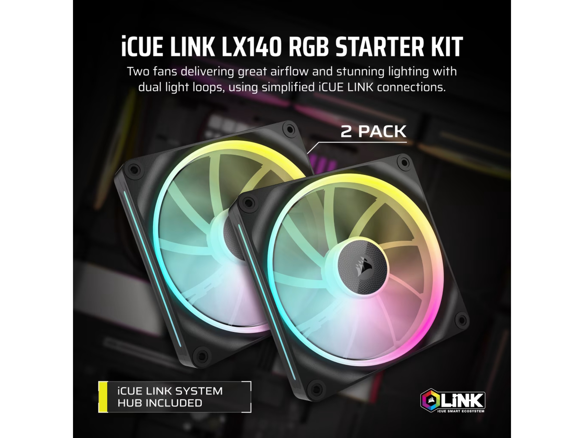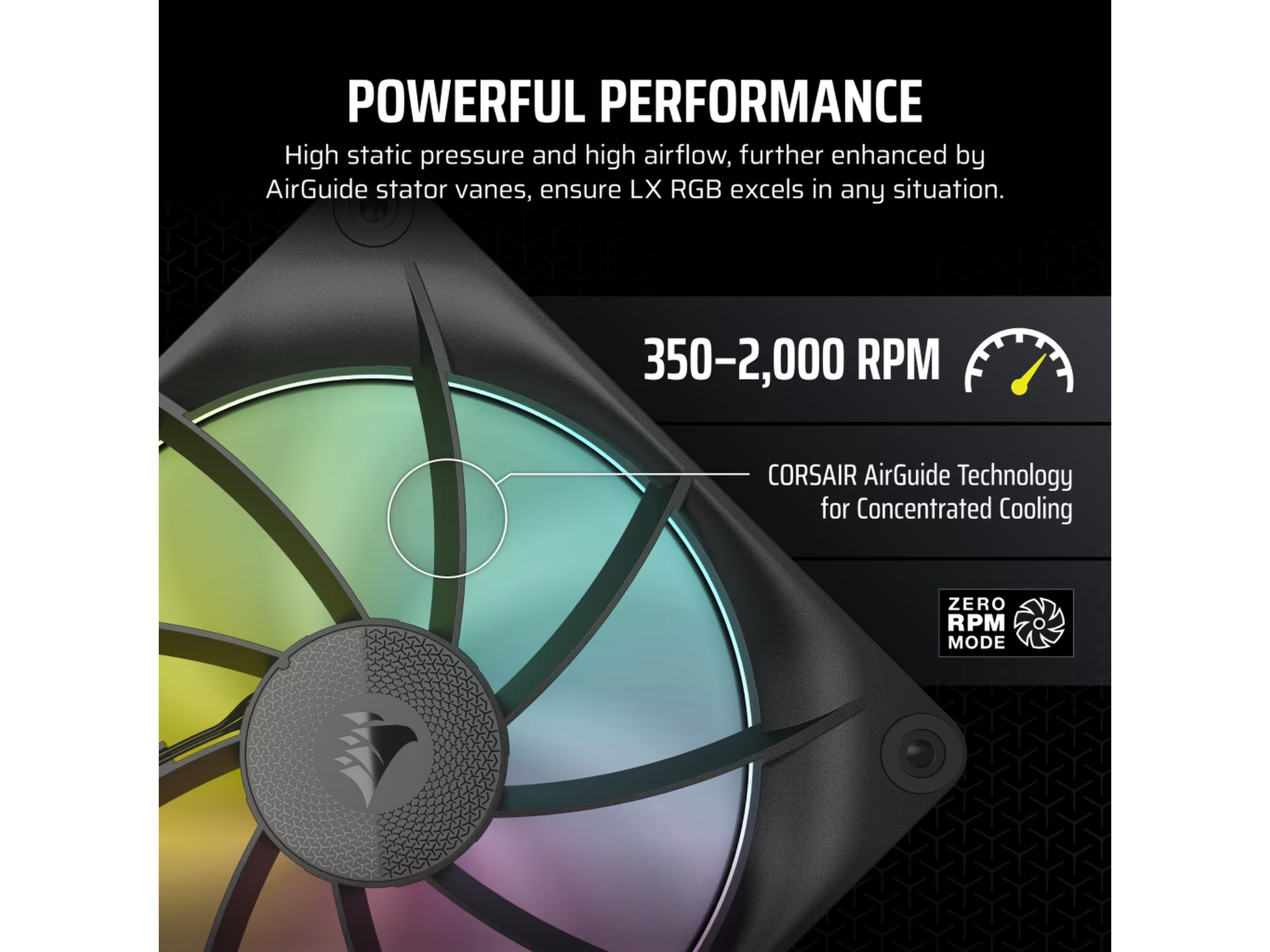 - Krever iCUE LINK System Hub (inkludert med LX RGB-startsett)