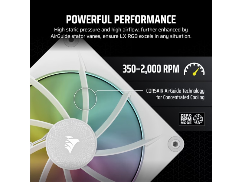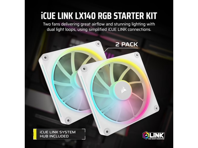 - Krever iCUE LINK System Hub (inkludert med LX RGB-startsett)